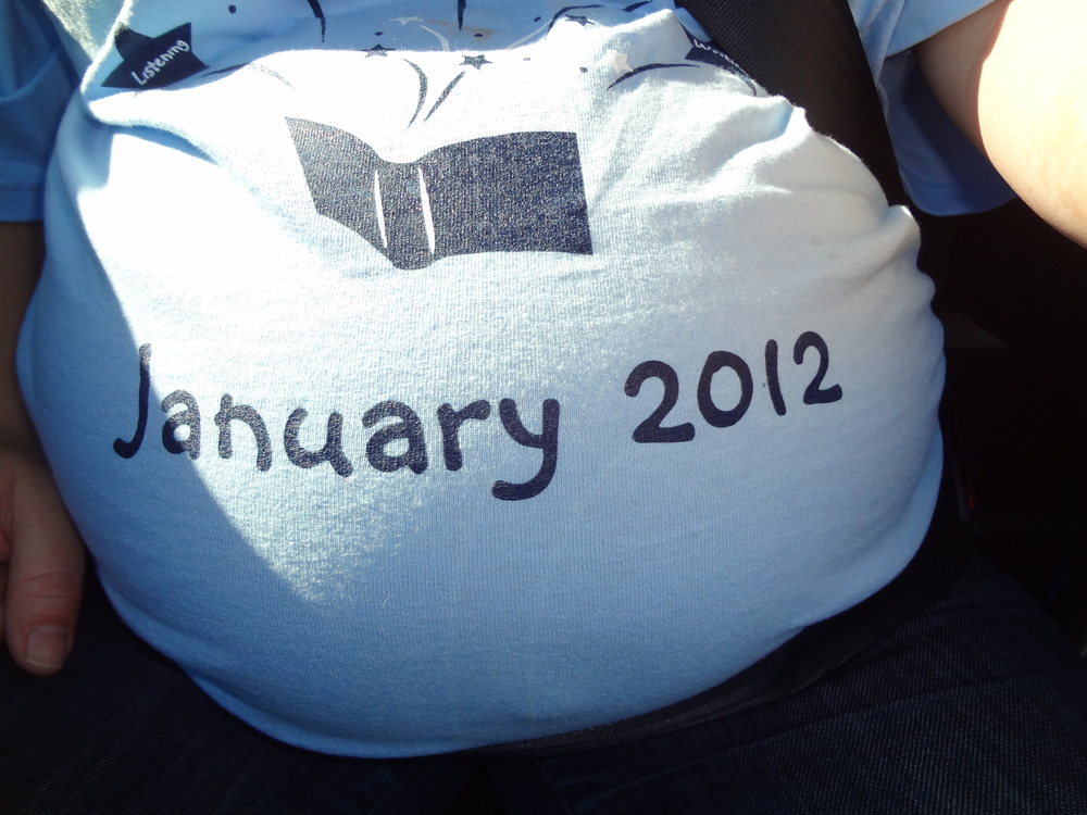 The cards and gifts were thoughtful. Home-sewn burping cloths, a striped bathing suit, an insulated cup for a nursing momma, and treats.