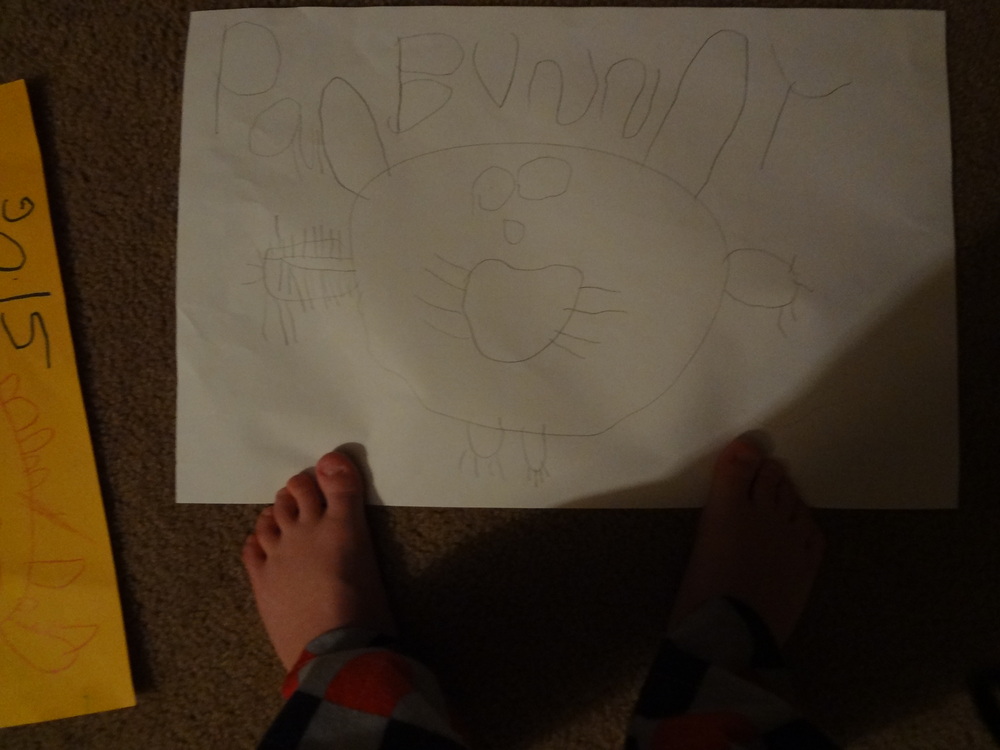 Might I add, that Paul drew that picture of a bunny from simply listening to my dictation from the couch of what a bunny looks like. When he showed it to me, I was astounded at his skill.