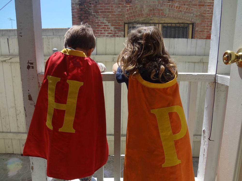 personalized capes (superheros unite!) adding to our growing collection of costumes