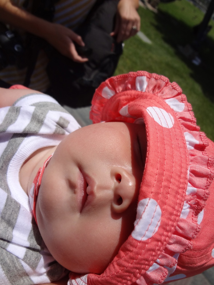 The baby had moments of sleeping, crying, and eating throughout.