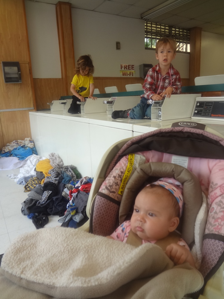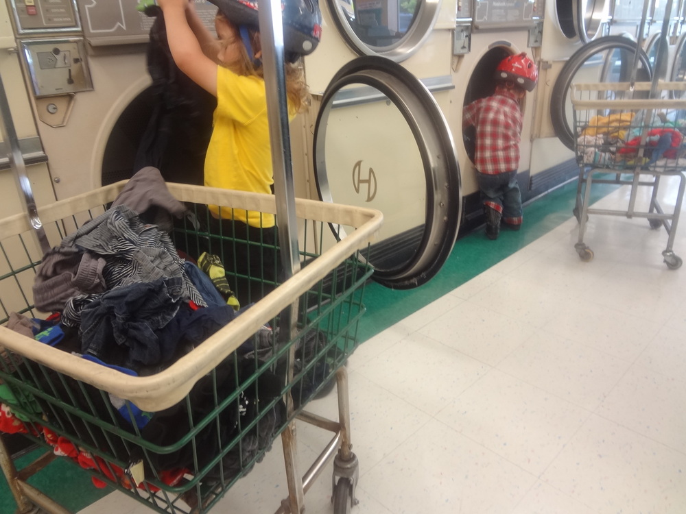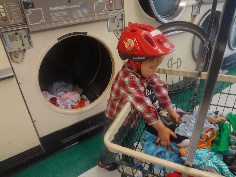 And Paul is dong better than Trixie (a character in the book Knuffle Bunny) who throws laundry all around when she should be helping her daddy.
