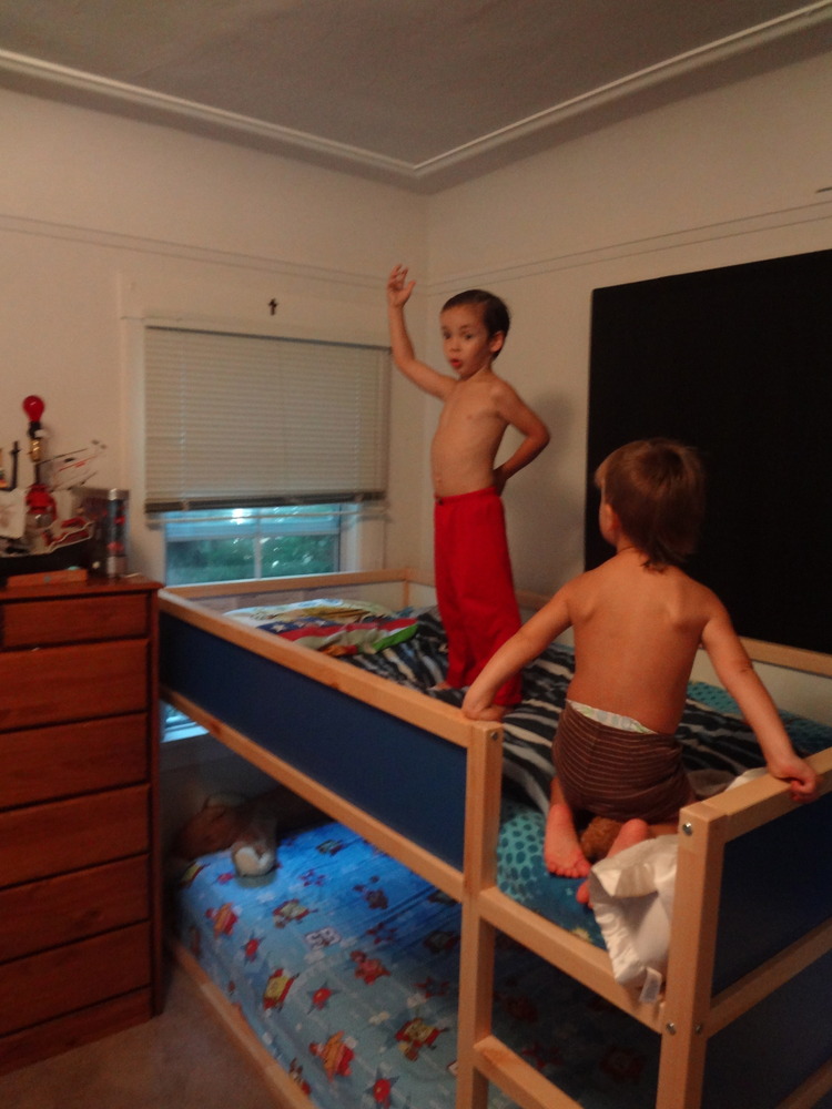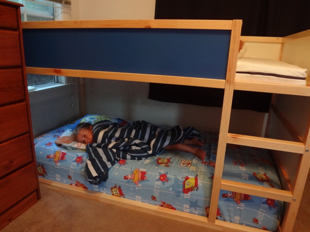 We opted for a lower bunk bed, although I am attracted to bunk beds that separate into two beds. I am happy to report that Henry was excited to sleep in a “big boy bed” and Paul wants to touch the celing.