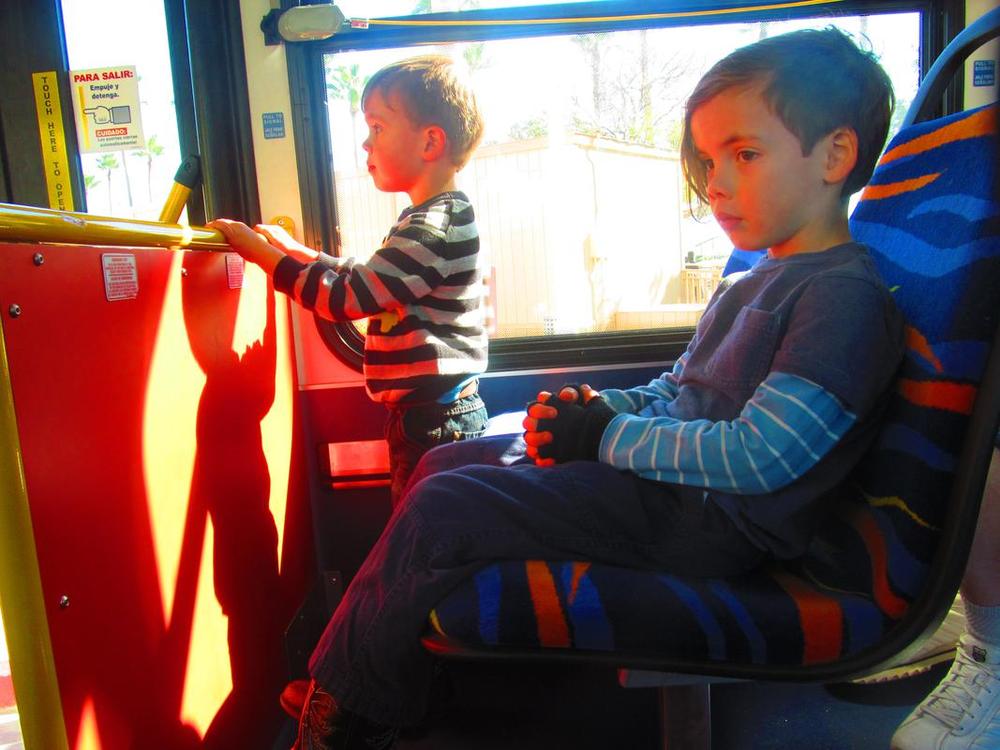 Luckily, Long Beach buses are free for college students (at CSULB) and all three of them are young enough to ride free as well.