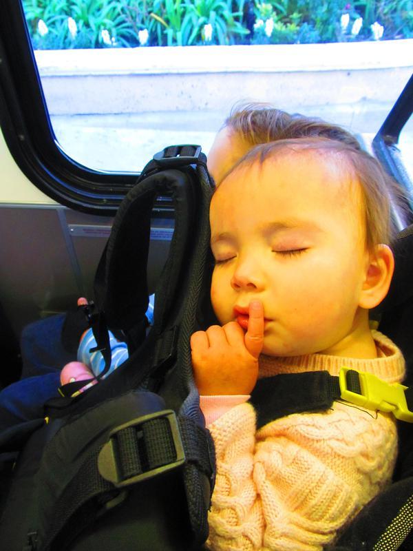 The nice part of the backpack is that just like the bike cart and the sling, this little girl will fall asleep wherever she can be snuggly.