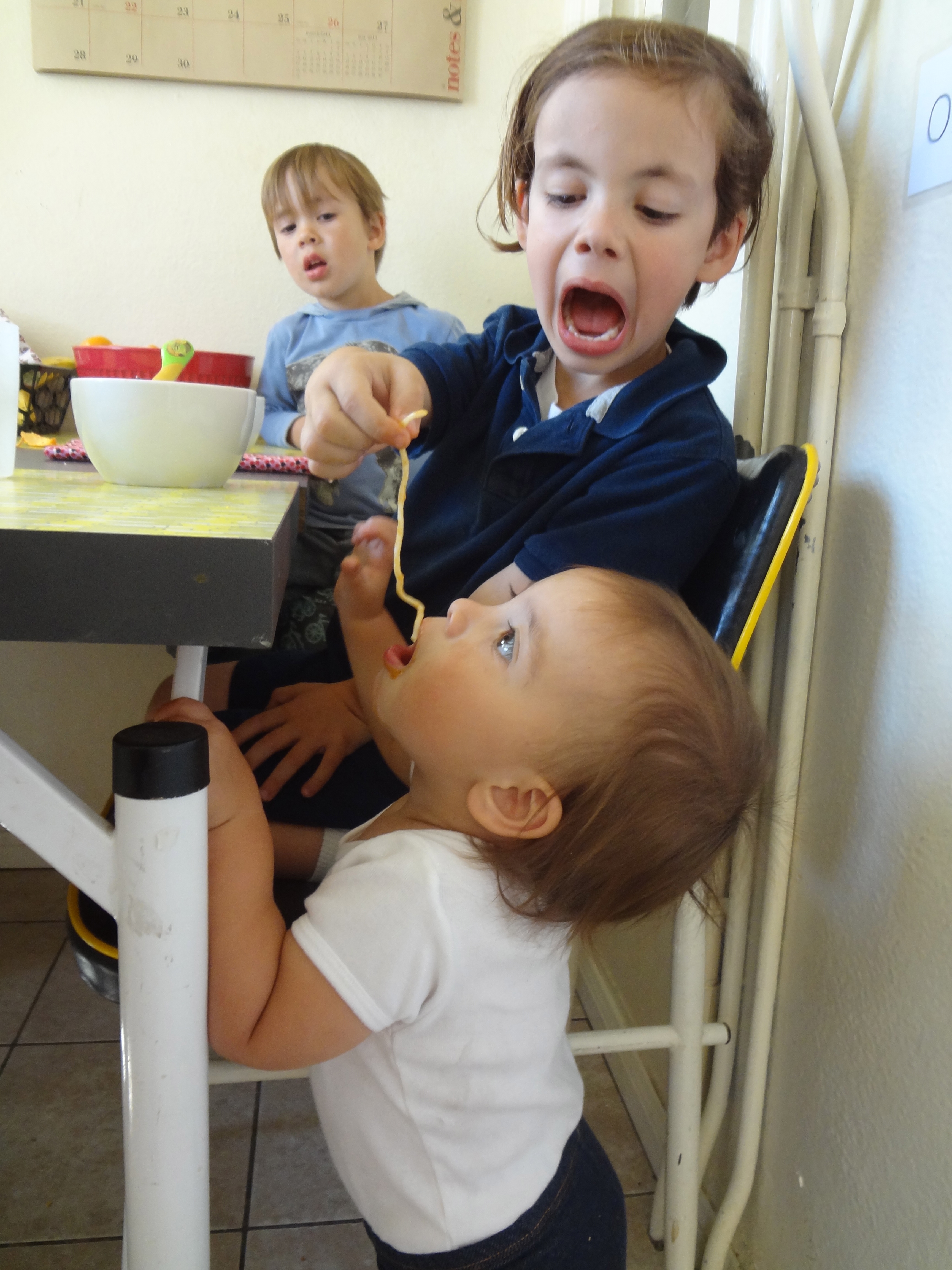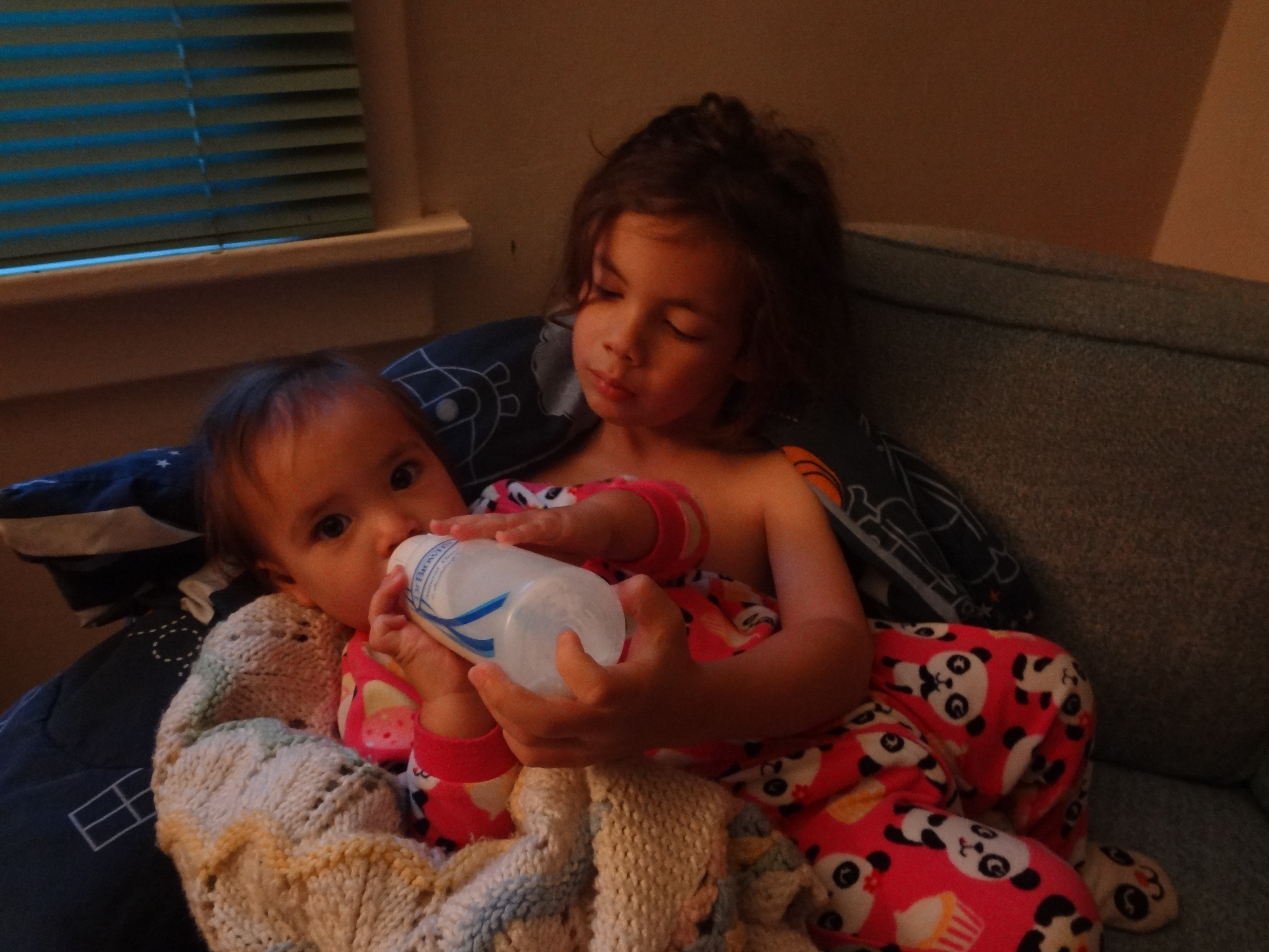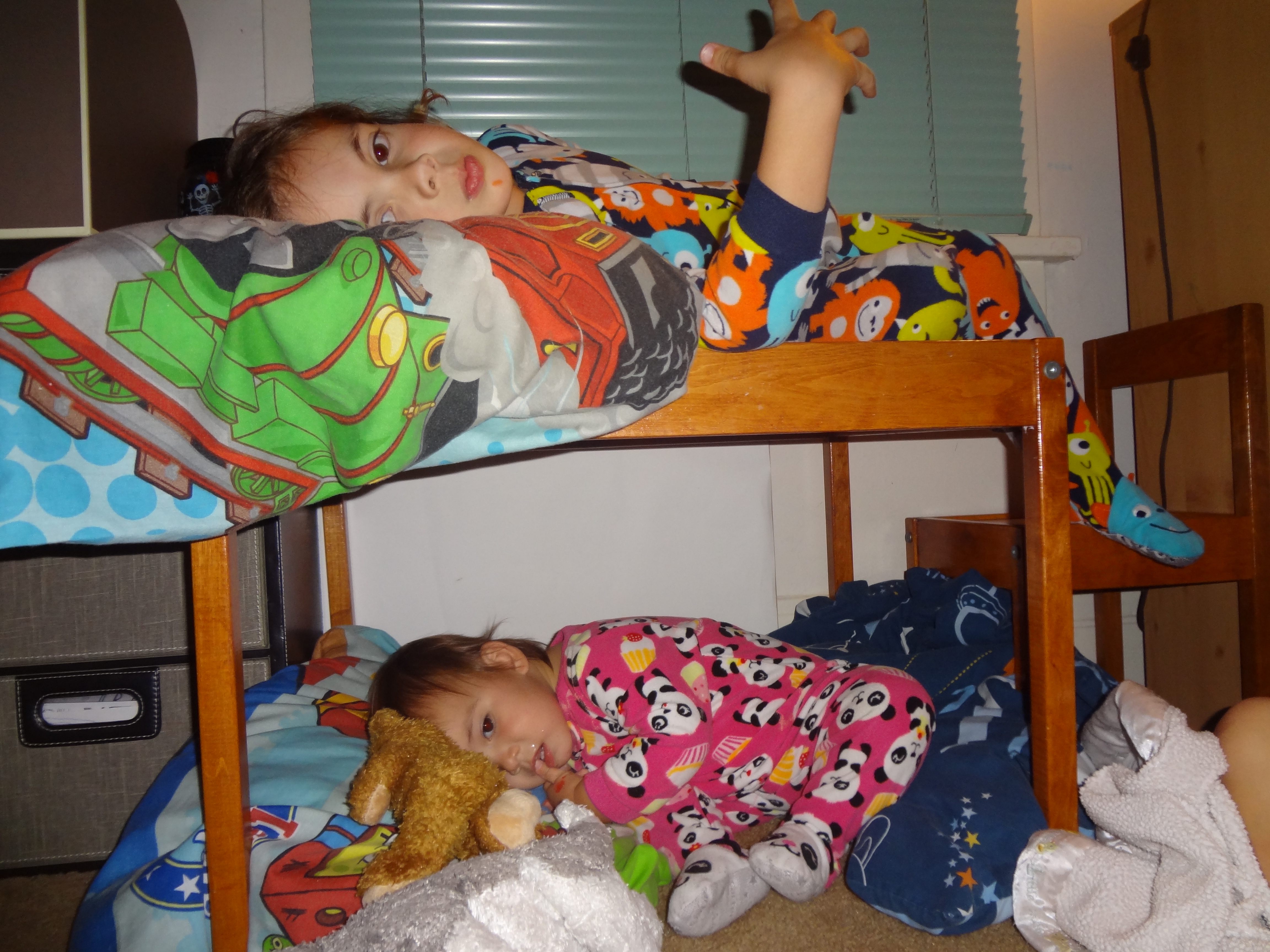 Seconds later they have moved on. Tonight it was the game of making a “baby bunk bed” and she played right along with them.