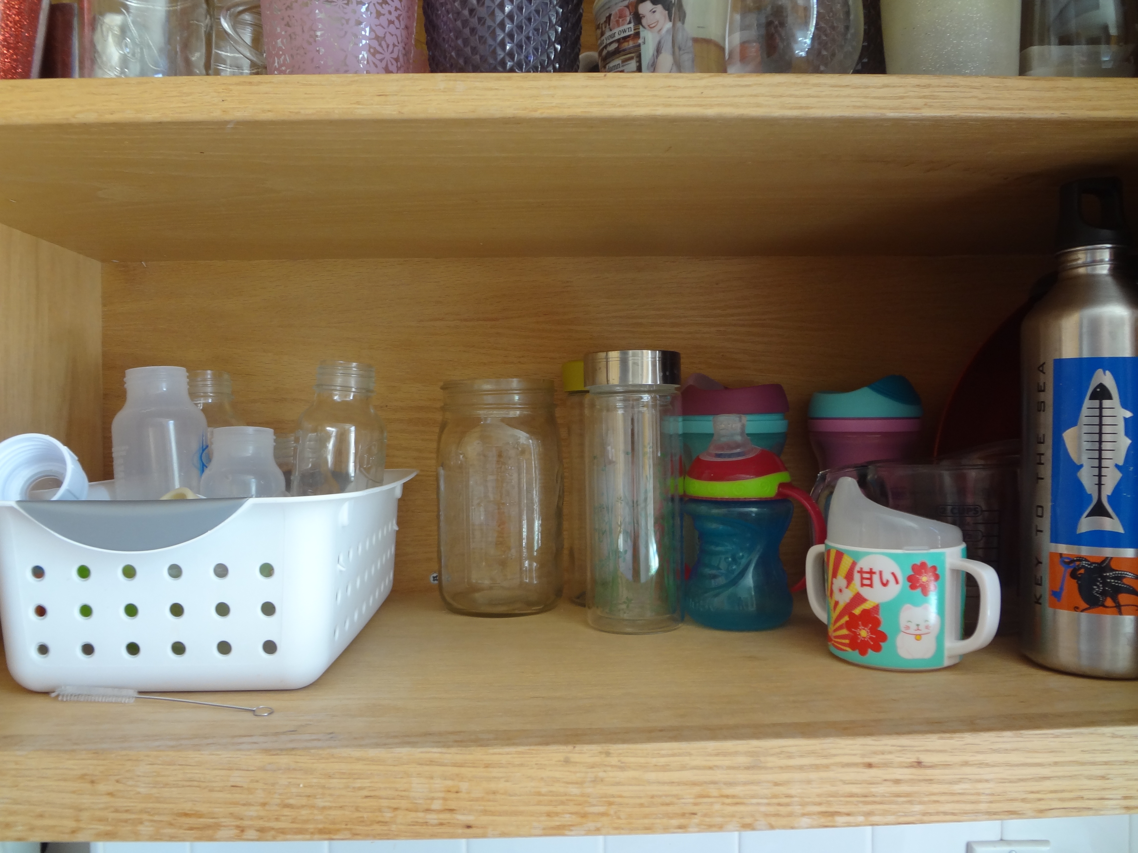 The white basket came from this cupboard where we had an overstock of “baby stuff.” This shelf signifies also the awareness that my little girl is needing less of this baby stuff. Unlike previous years where it got moved to a closet for saving, this time I tossed most of the stuff knowing I am not having anymore babies.