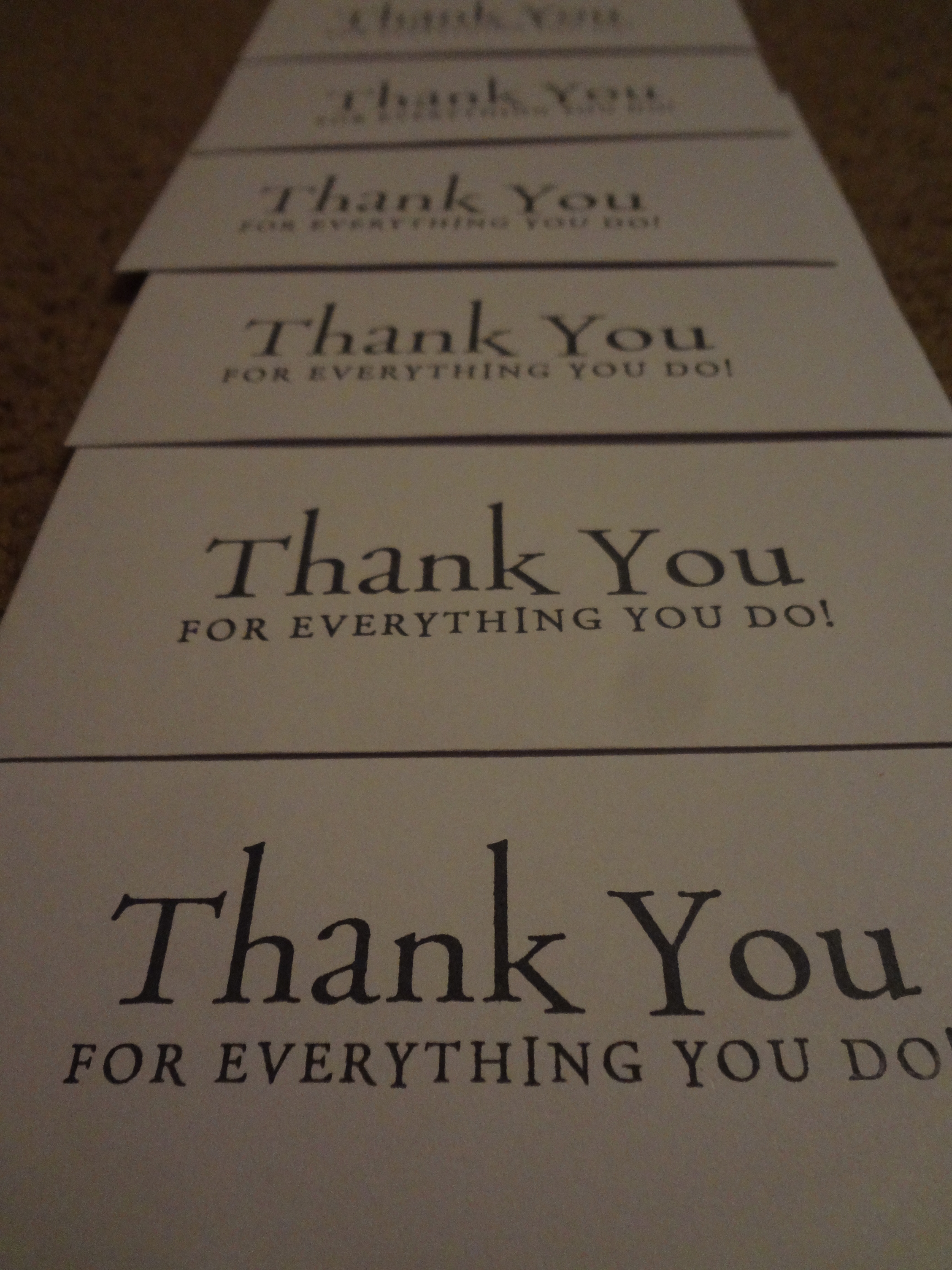 Plus I love some of my coworkers, so spending time saying “thank you” has been a good focus for this week (I have still cried every single day, truthfully). Students brought in cards, flowers, candy, and teacher appreciation was in full force, headed in all directions this week.