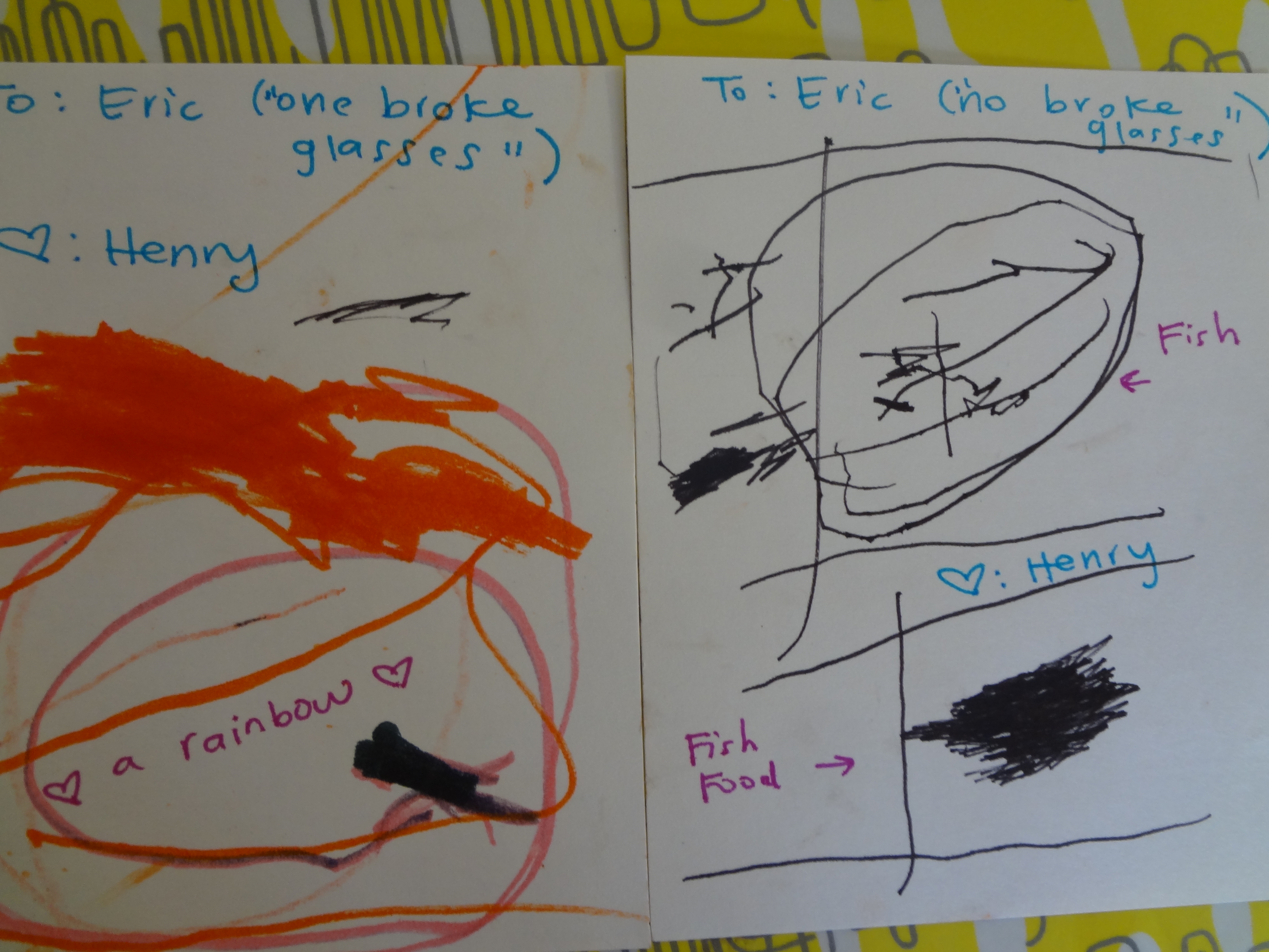 I helped Henry with addressing his: he has two teachers named Eric. He loves them both.