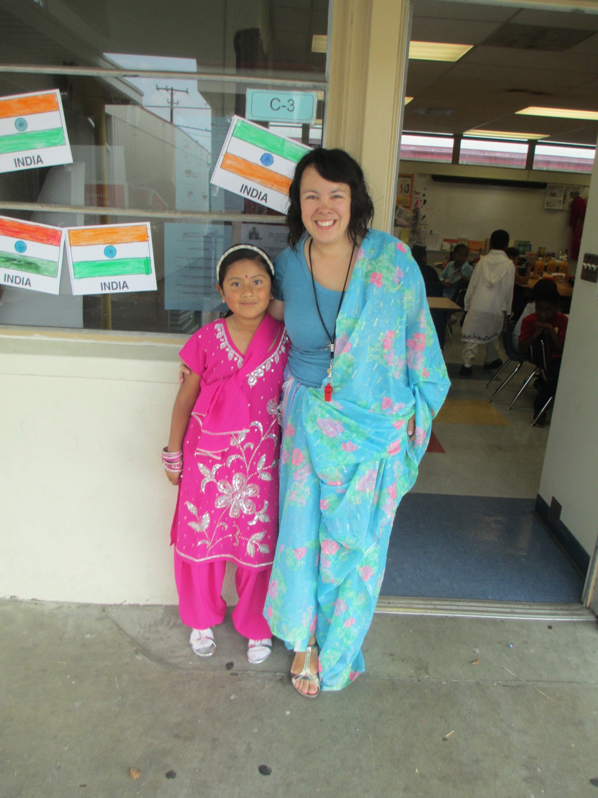 All of this culminates in a school-wide, multicultural day celebration. The last couple years I have been teaching my students some of the dance steps to “Jai Ho” (the song from Slumdog Millionaire) and this year they were so synchronized: