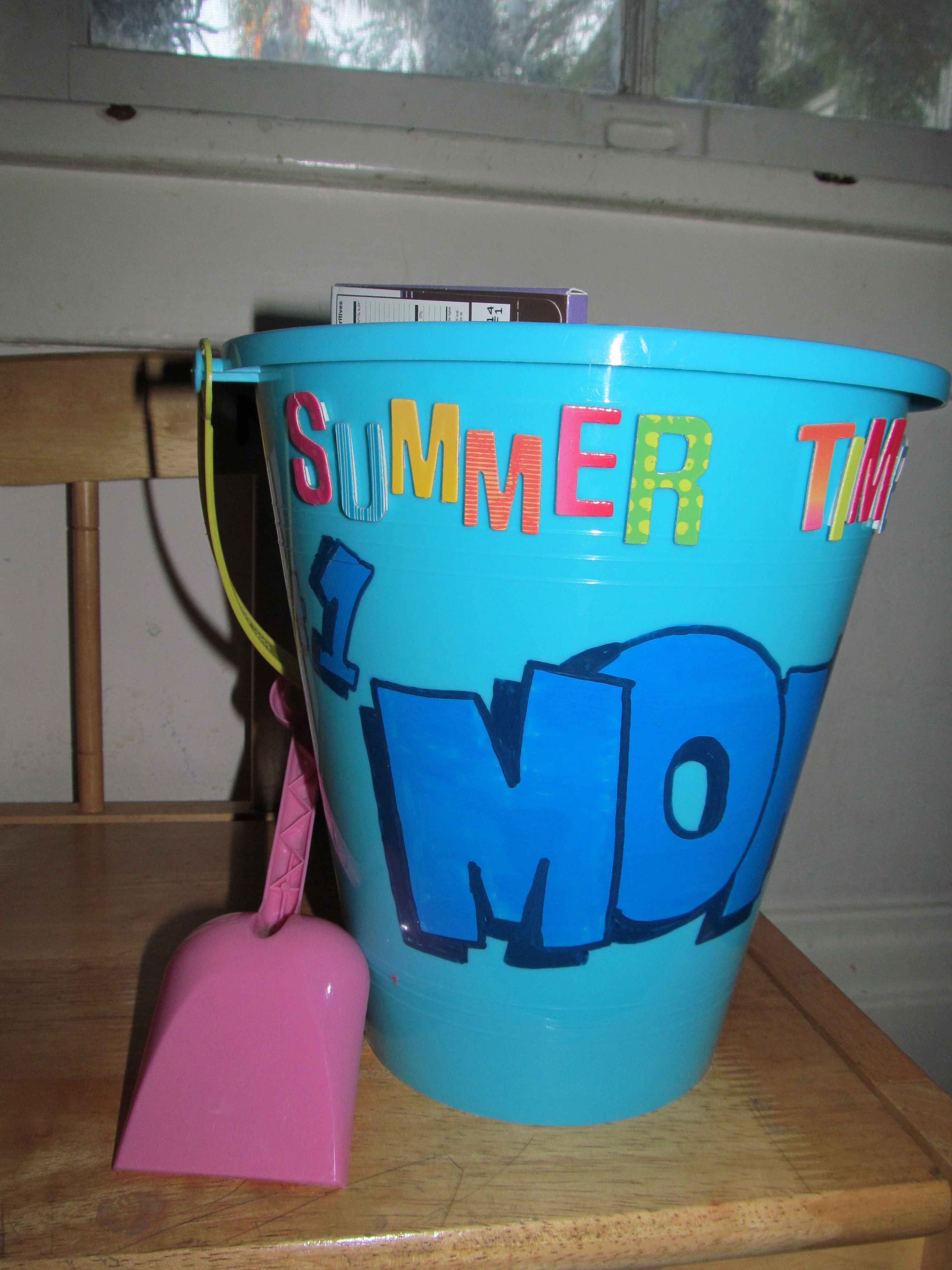 They were in their bathing suits and a gift bucket filled with treats was hinting that we would be spending some time seaside.