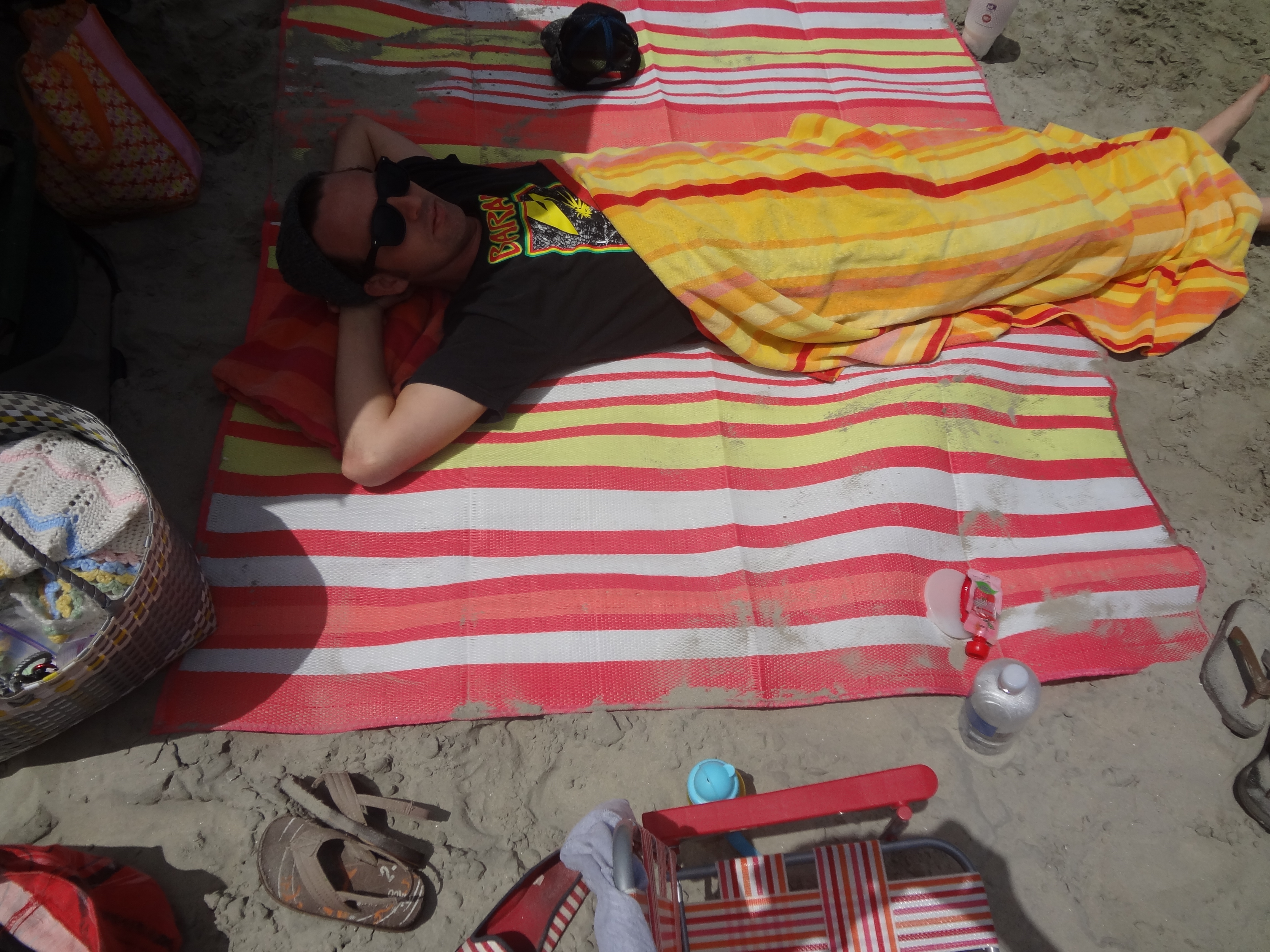 We are getting better at packing for our adventure. I have to carefully invest in key items. My newest being the plastic mat that is baby and food friendly so towels can be used for drying off. I don’t love sand everywhere.