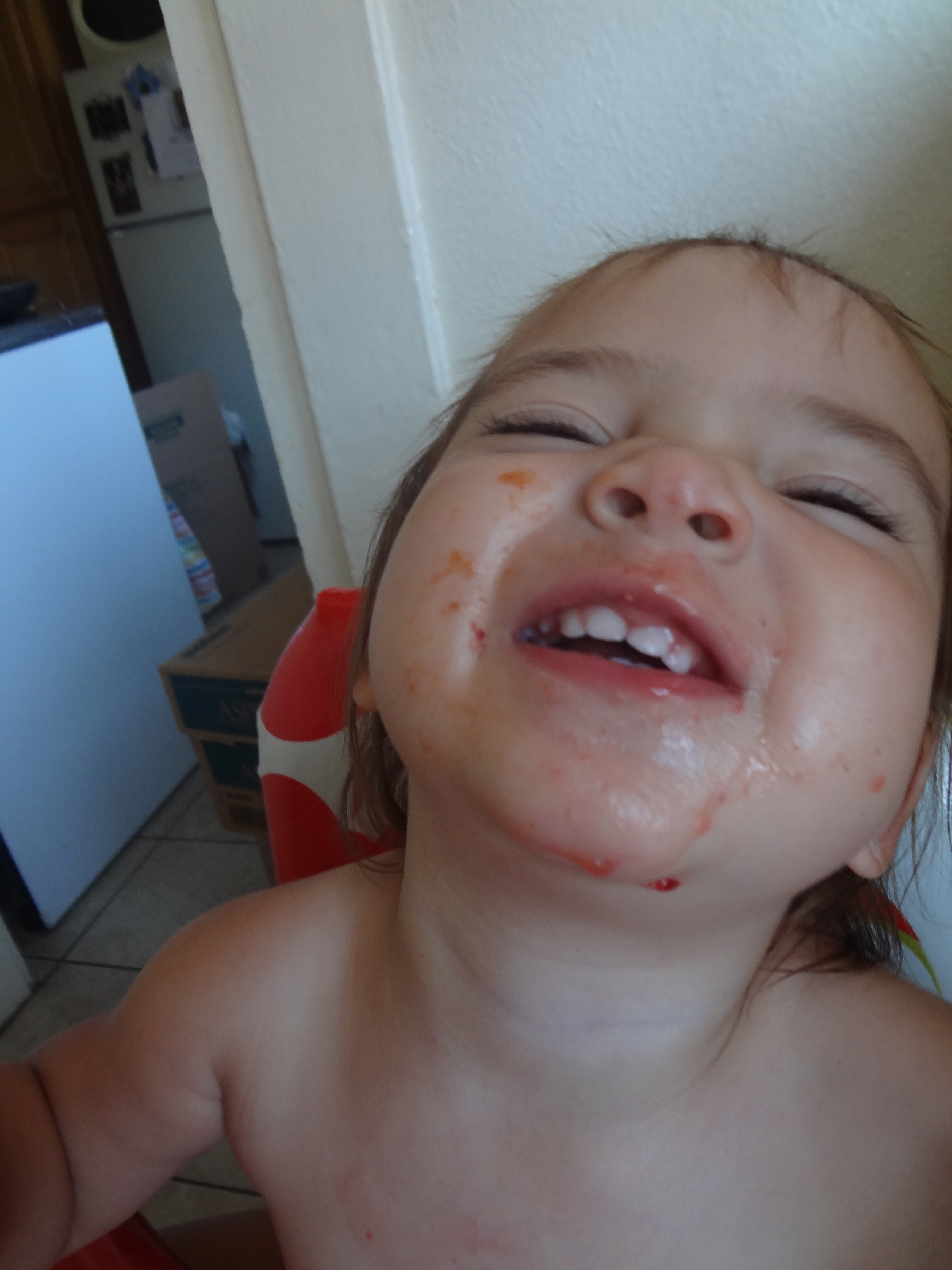 This morning Olivine was signing for more as soon as she saw the bowls on the counter. How much fruit can one baby handle??