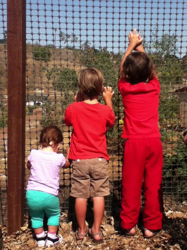 An organic local farm that we visited yesterday, the kids are standing at the fence talking to the chickens.