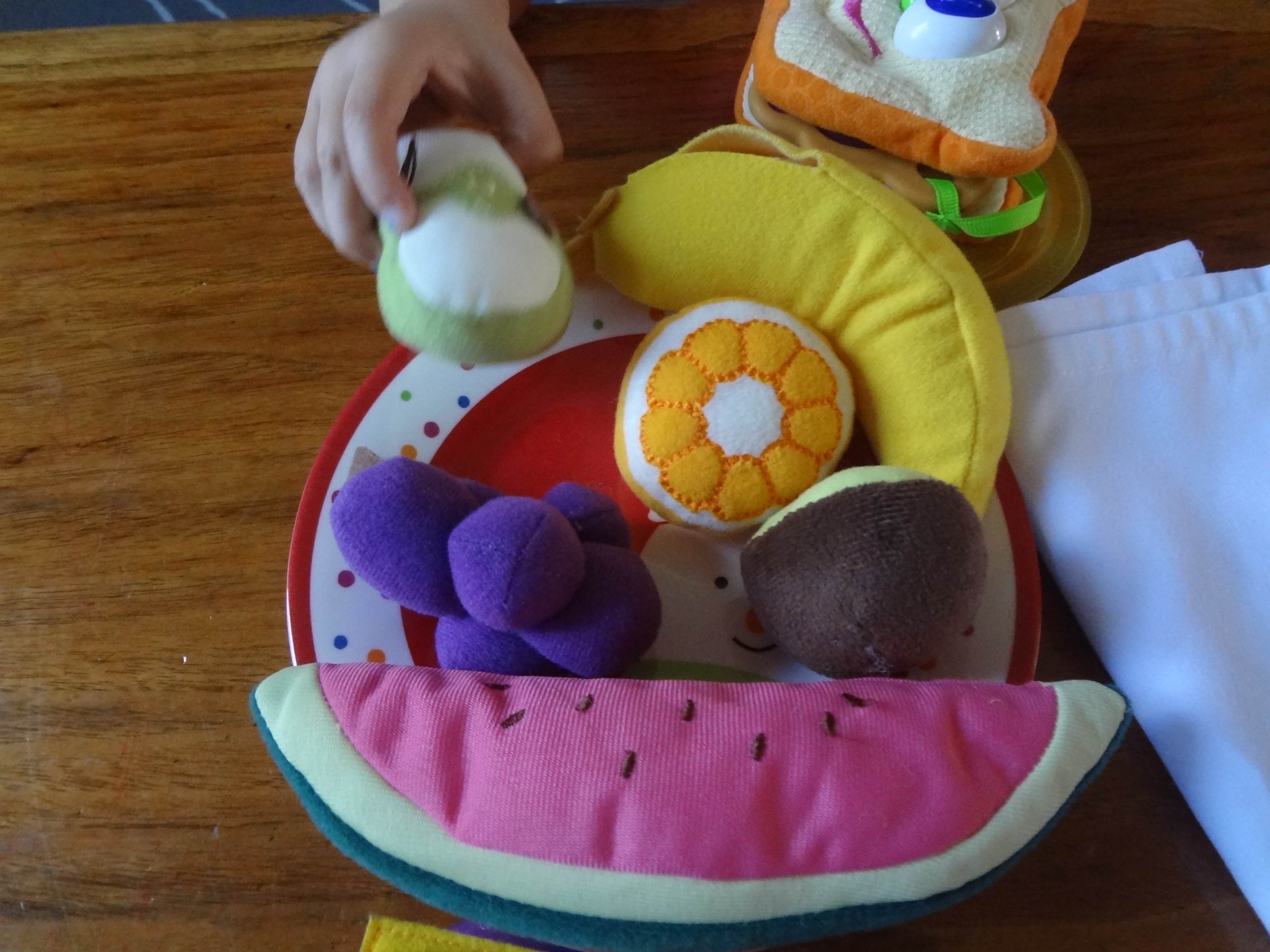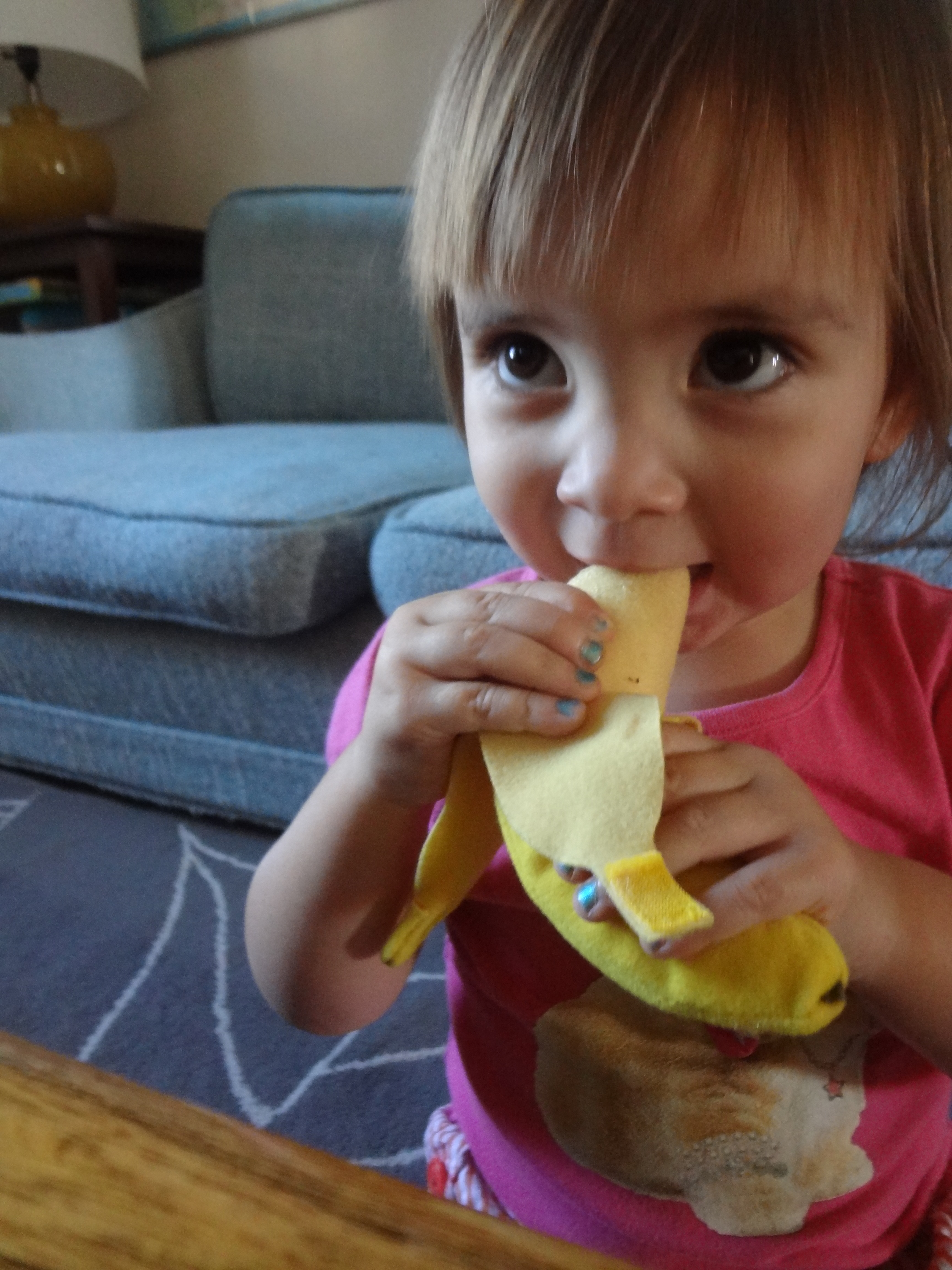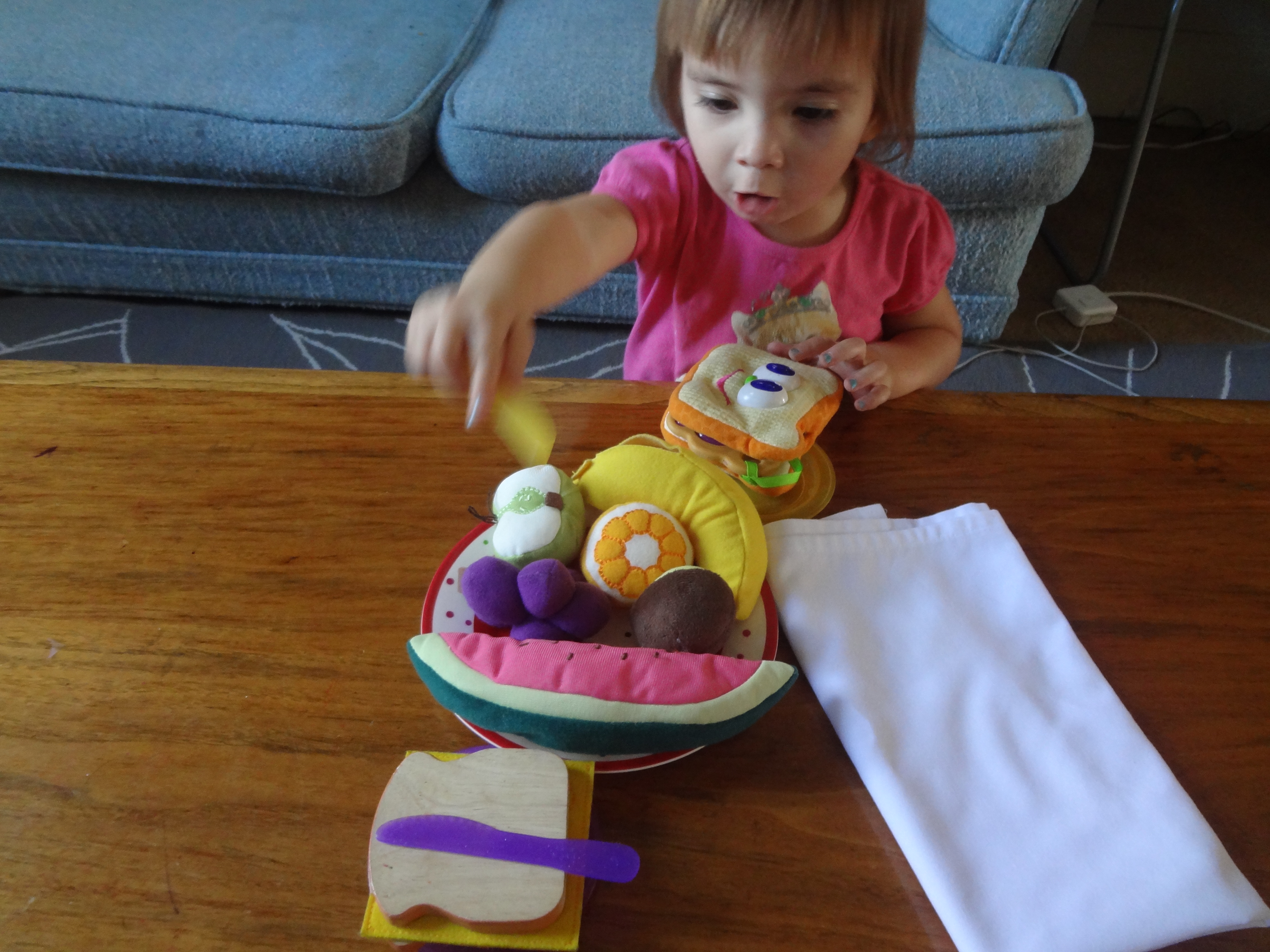 She is much better at pretend play than I am. She raved to Paul about how good the food was with “Yum” and “More” which had him smiling ear to ear.