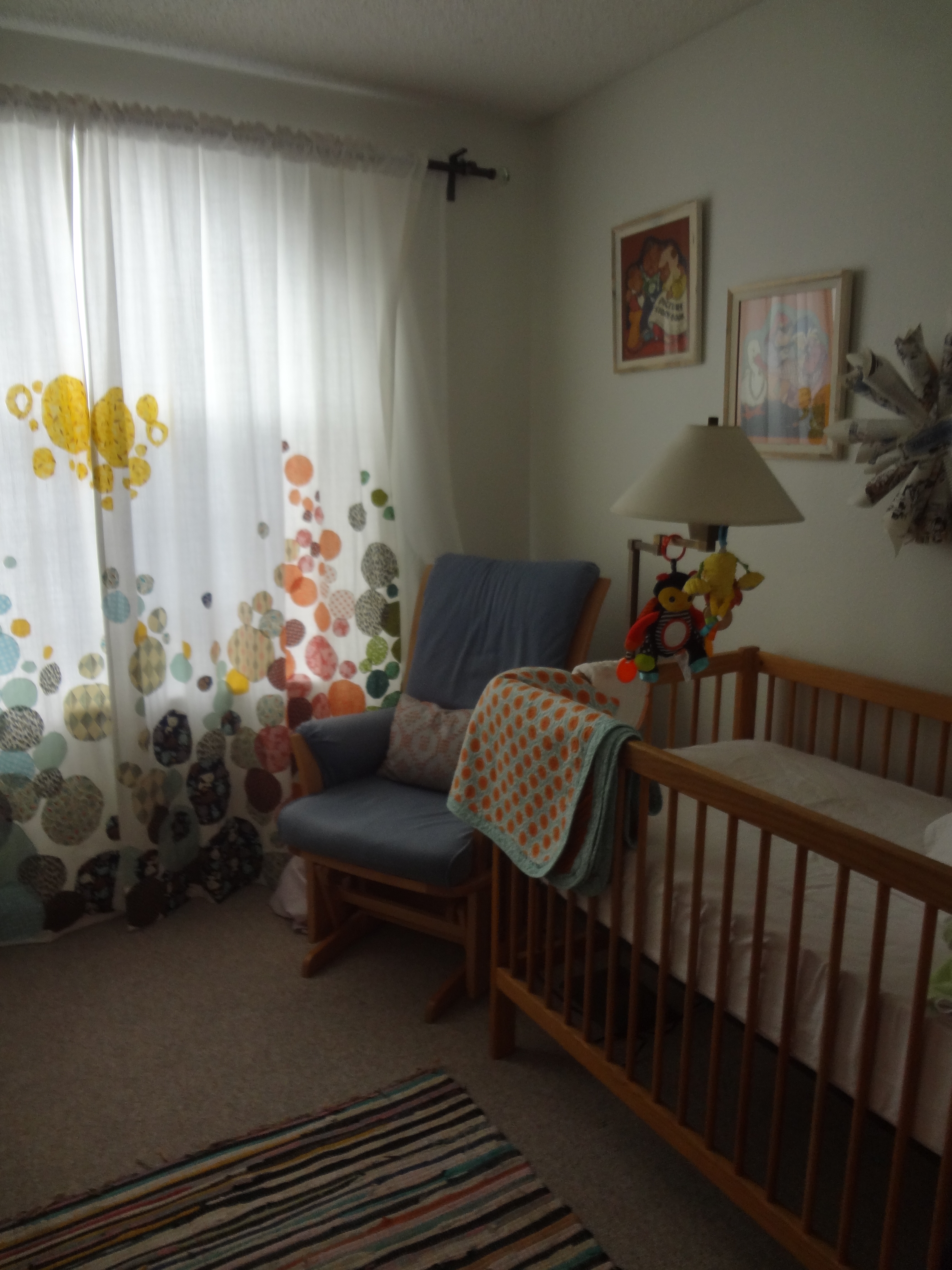 I must share a peek of her nursery that has touches of her craftiness (handmade curtains) and her mother (handmade blanket)