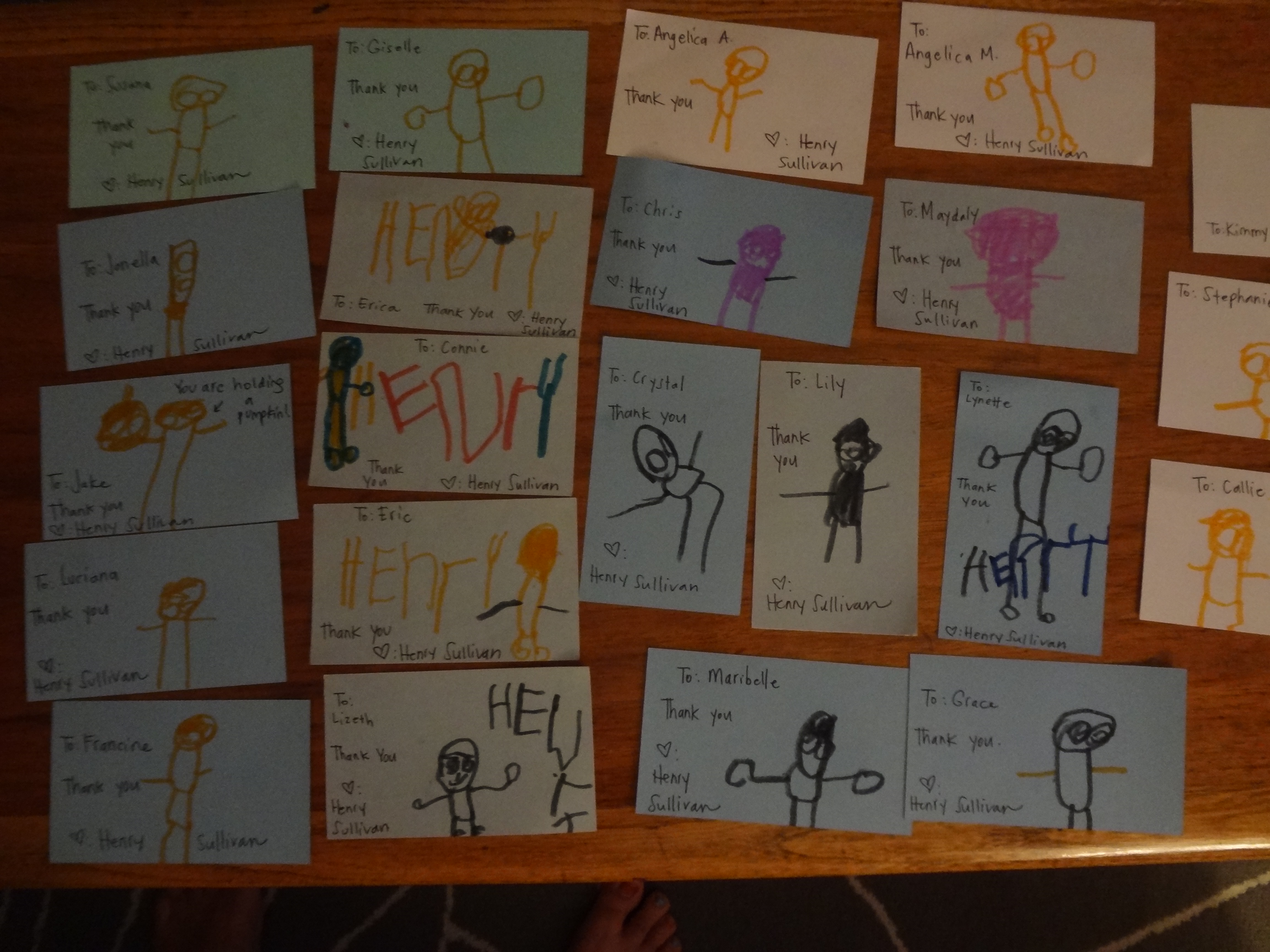 And then there is my Henry, he seriously cranked out twenty-three different drawings and he could name each one of his teachers.