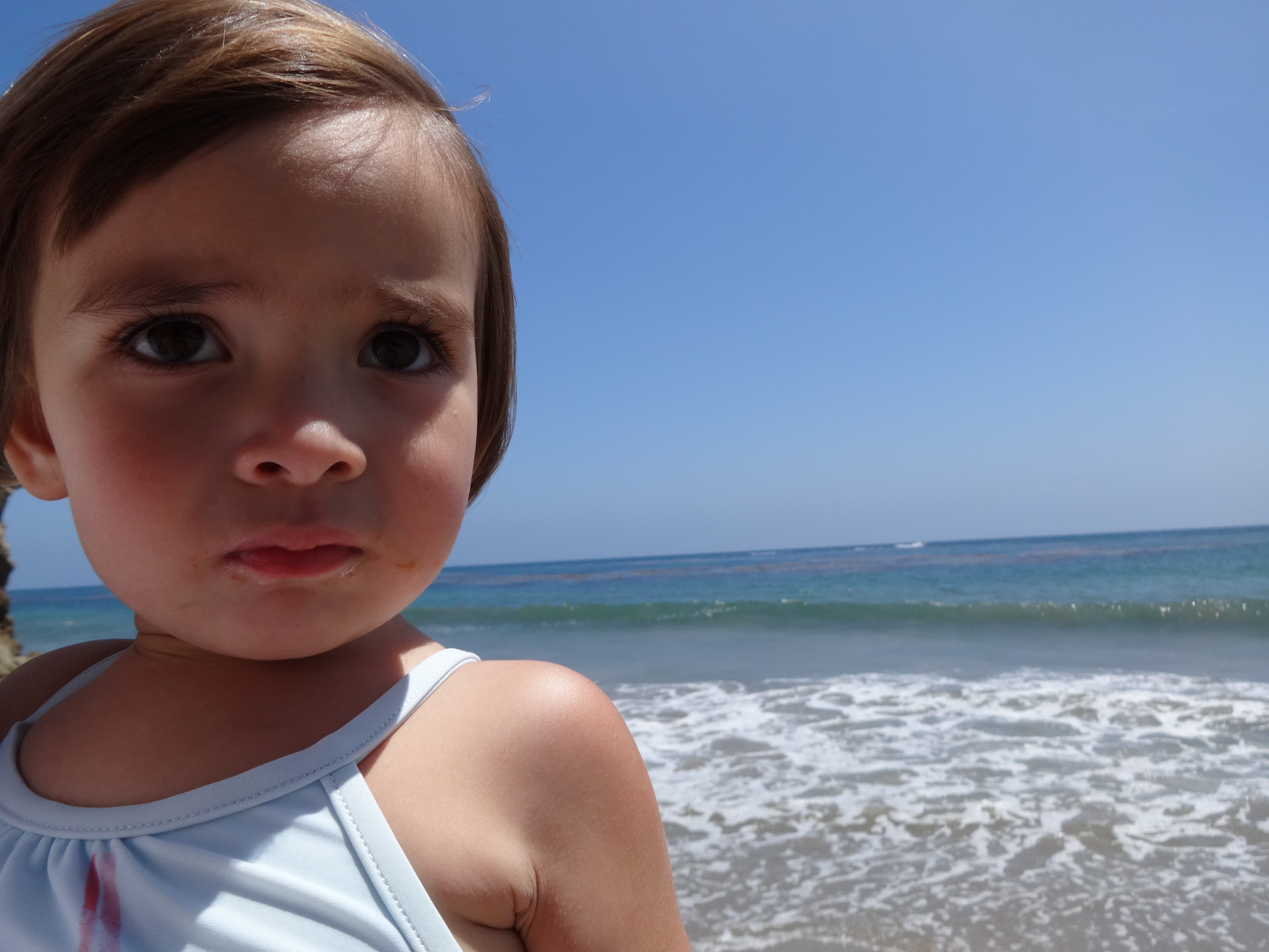 and the littlest one eager for a swimsuit but not yet ready for the water.