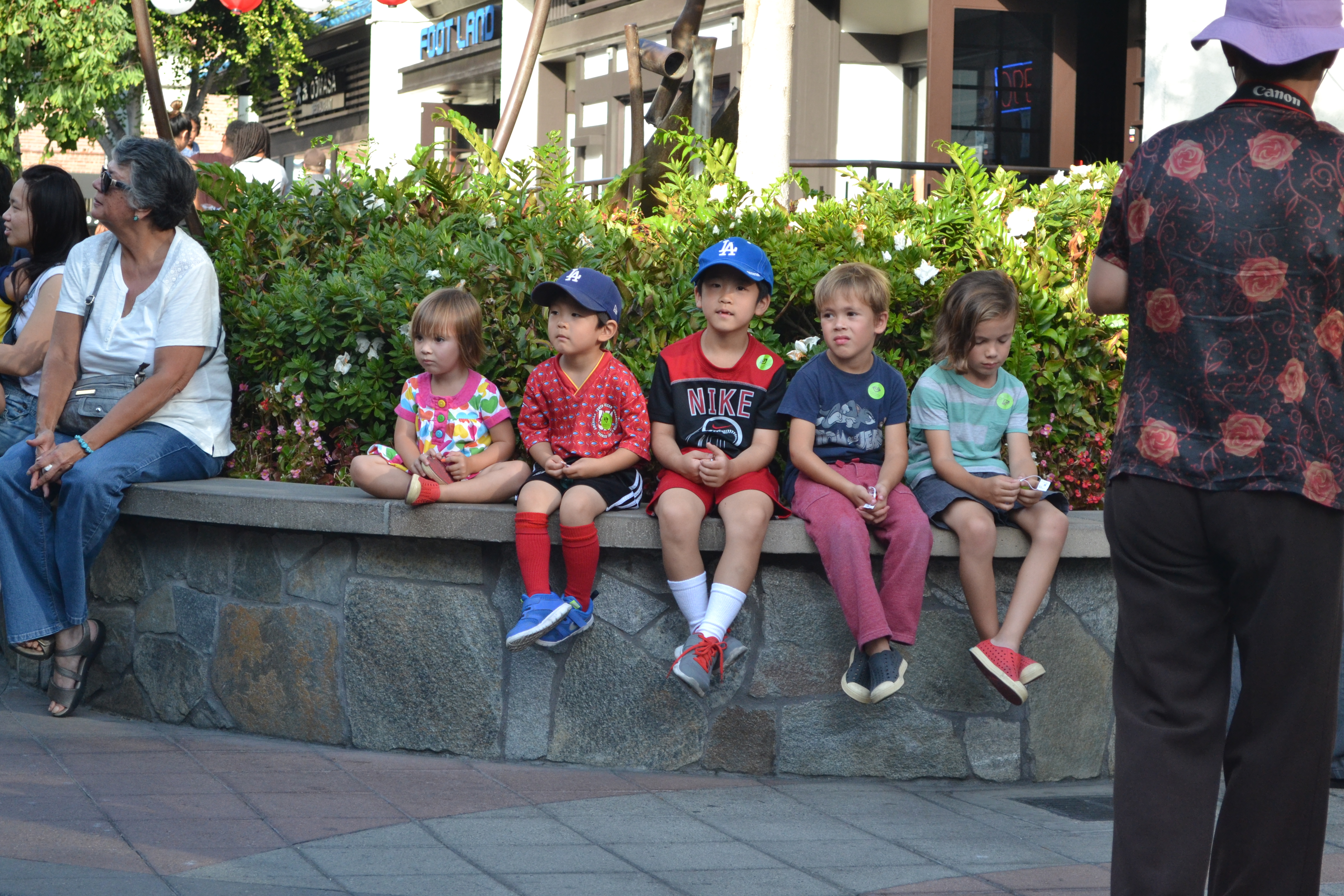 Although I didn’t capture it on film (no regrets for living in the moment instead of behind the lens). I will make it a point to acknowledge my children tried eel and squid at the shared table. I am proud of their risk taking and willingness to try something new. We have proudly fed them vegetarian meals but realize this is our choice. We want them to eventually decide for themselves if they want to eat meat. I strongly believe their choice should follow after learning or experiencing otherwise for themselves. What was their reaction? They loved the eel and Henry said the fried squid tasted like a worm. But there you have it, all three ate seafood last night.Plus, Mimi can translate signs in Little Tokyo. We did get asked if we were sisters and started day dreaming again about a giant trip (nine of us in two families) to Japan. She goes almost every year and I have always wanted to go. But this is the kind of trip you plan, save, dream, plan some more, research, and who knows….I am hopeful. This is a place Joe and I would both love to take for so many reasons: speed train, hello kitty, crazy fashion, fresh noodles, and family history.