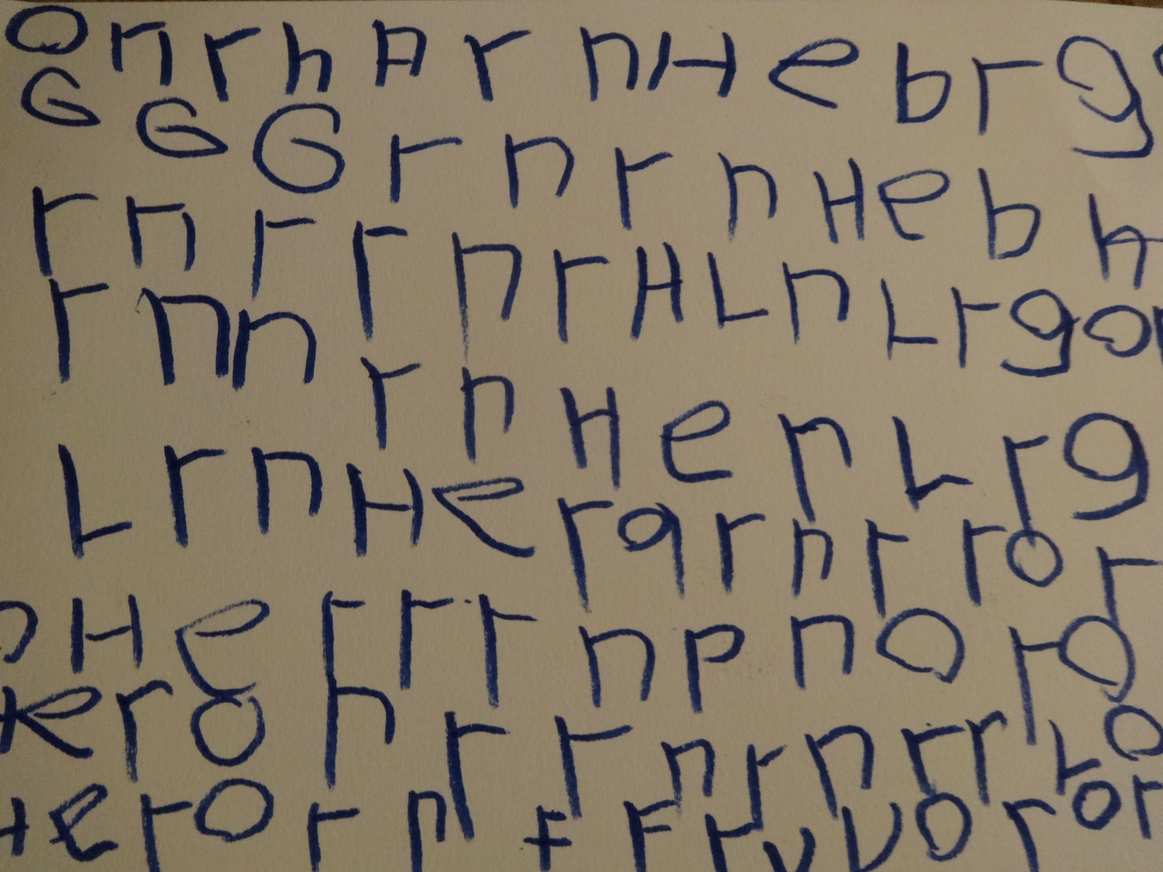 He drew the Angels and Dodgers with some serious detail. Other times, he gets out a paper while I am doing homework with Paul. He sits quietly practicing letters and mixing in parts of his name.