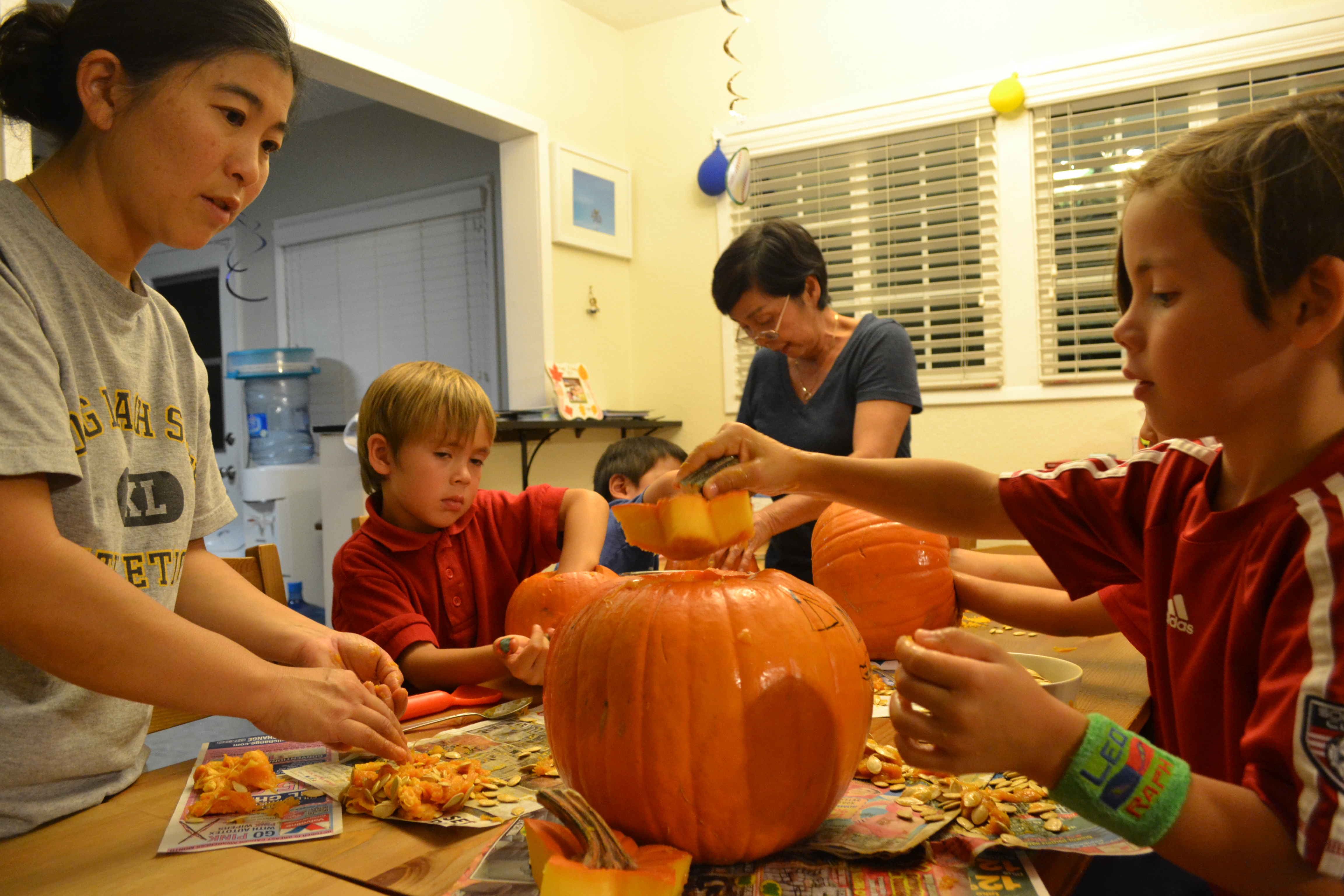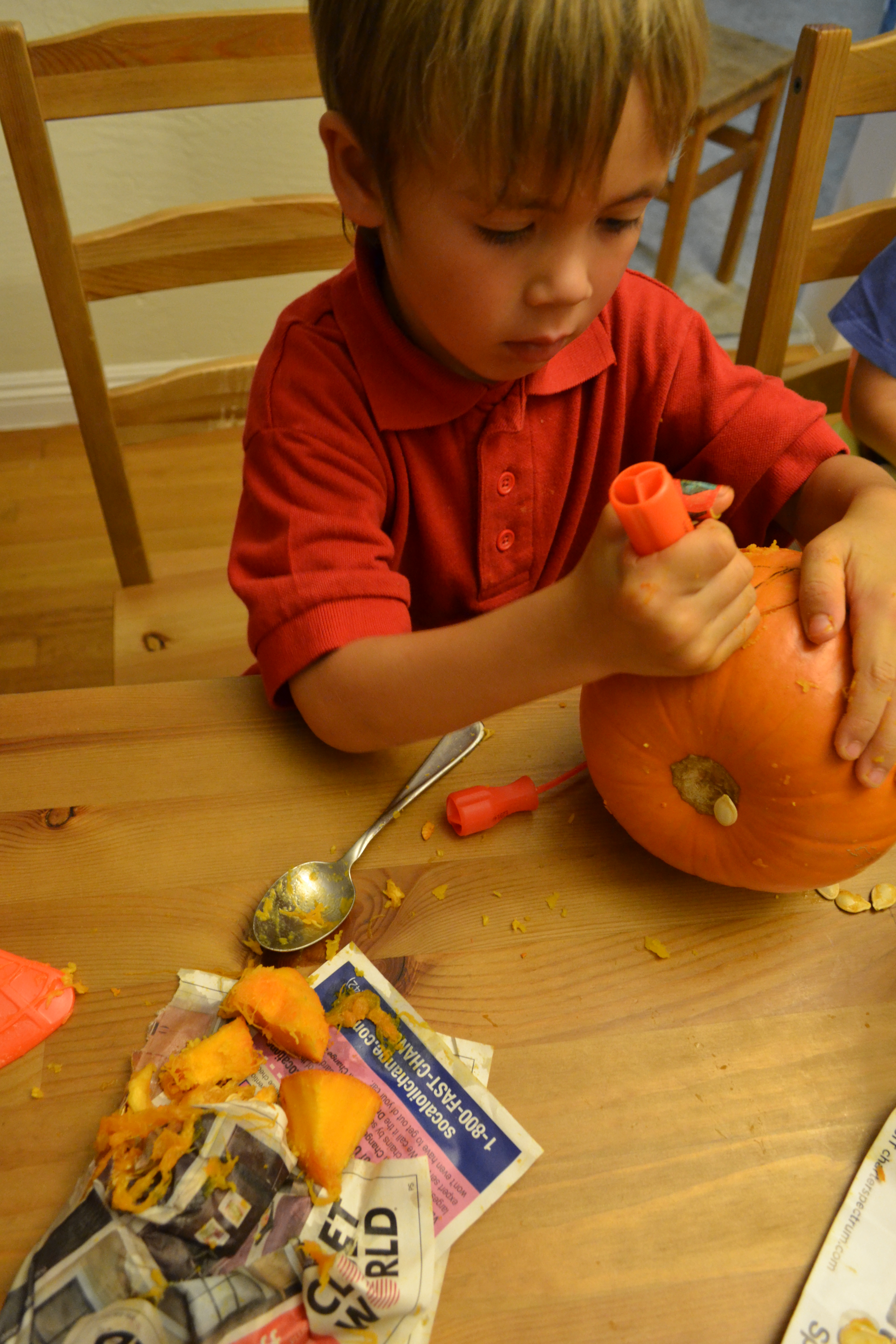 This was a Thursday night treat. Dinner with friends, followed by pumpkin carving.