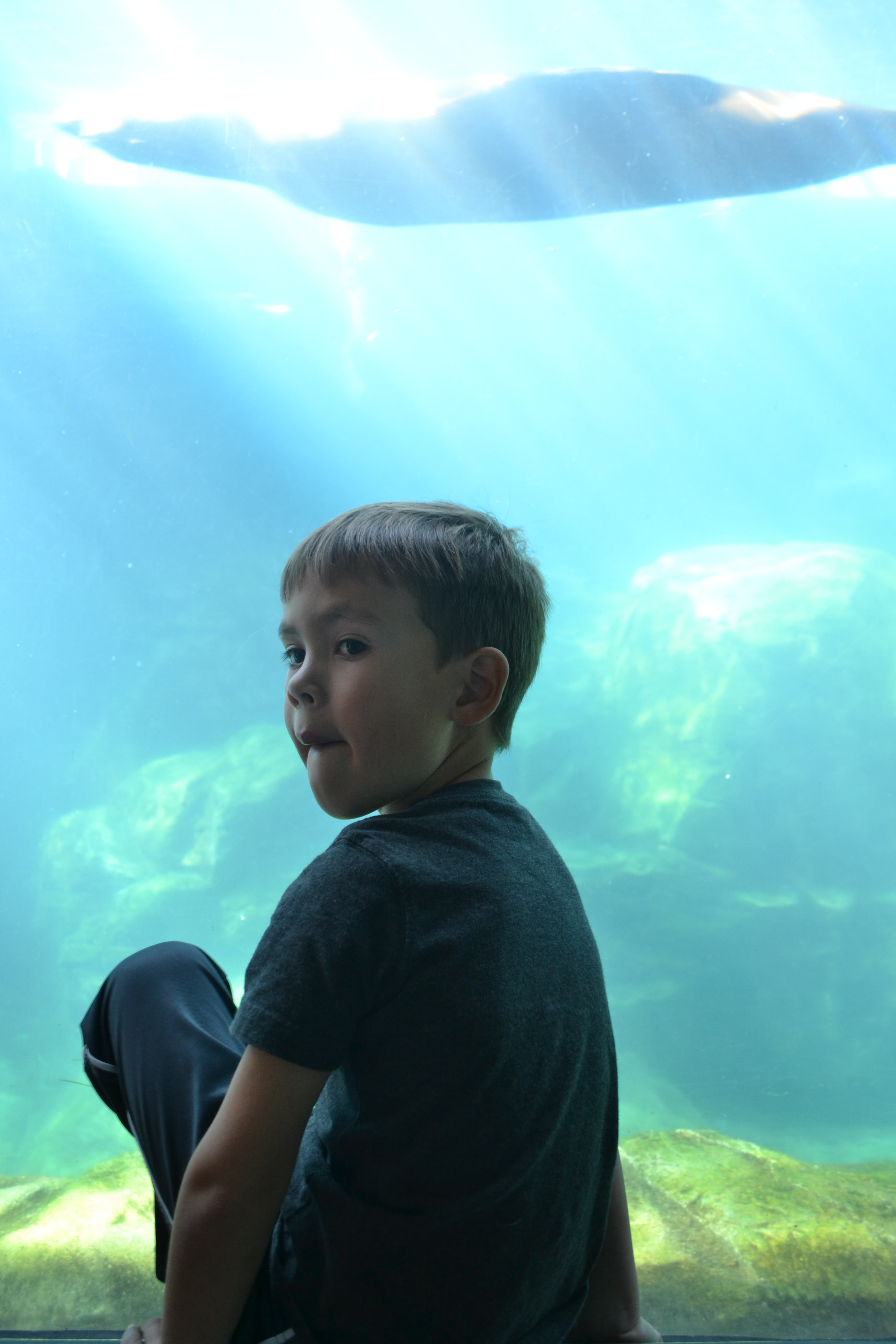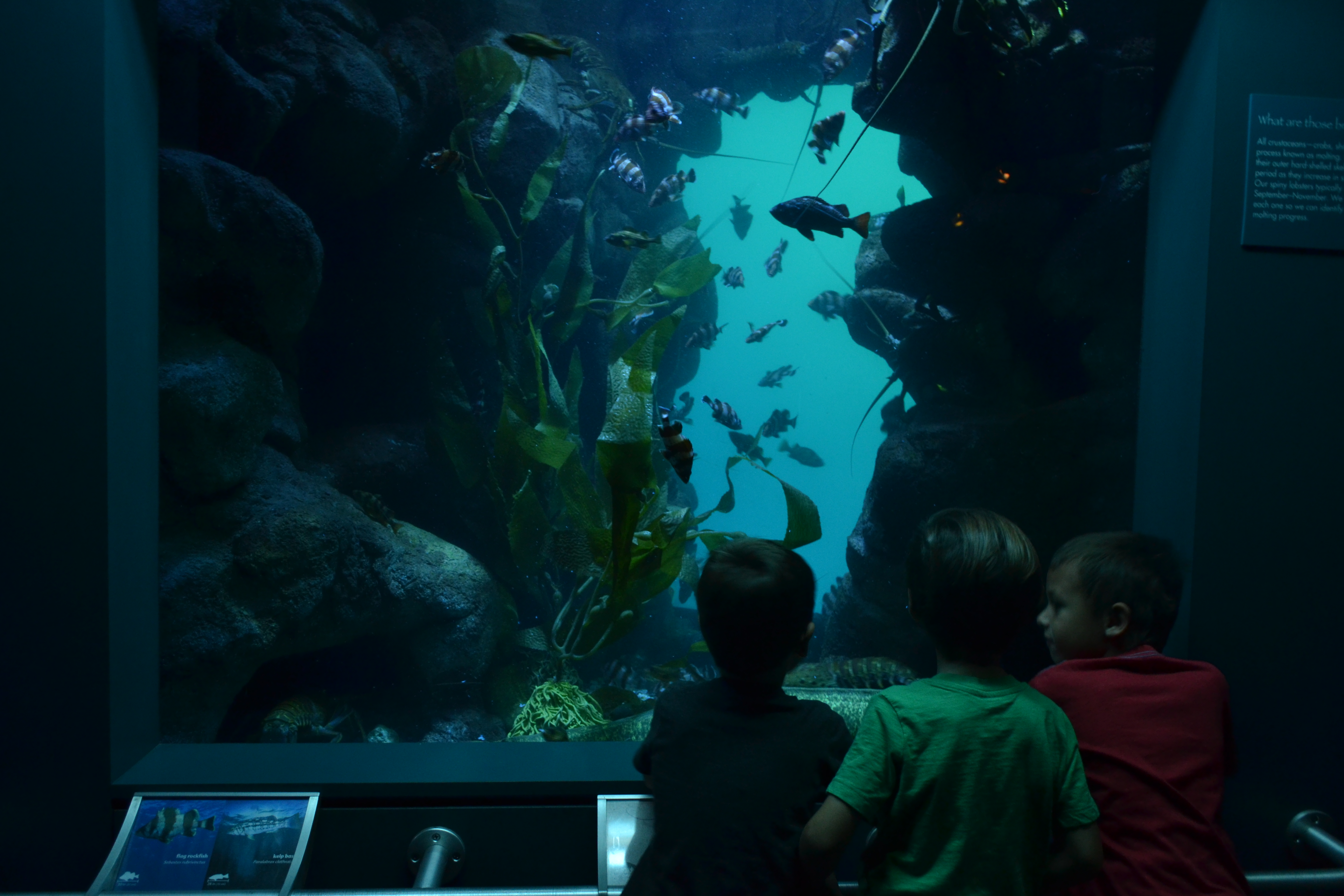 and his cousin came over to go to the aquarium. I really think these boys could have stayed at this one tank watching the giant lobsters and eels all day. They had sound effects and stories galore about these creatures.