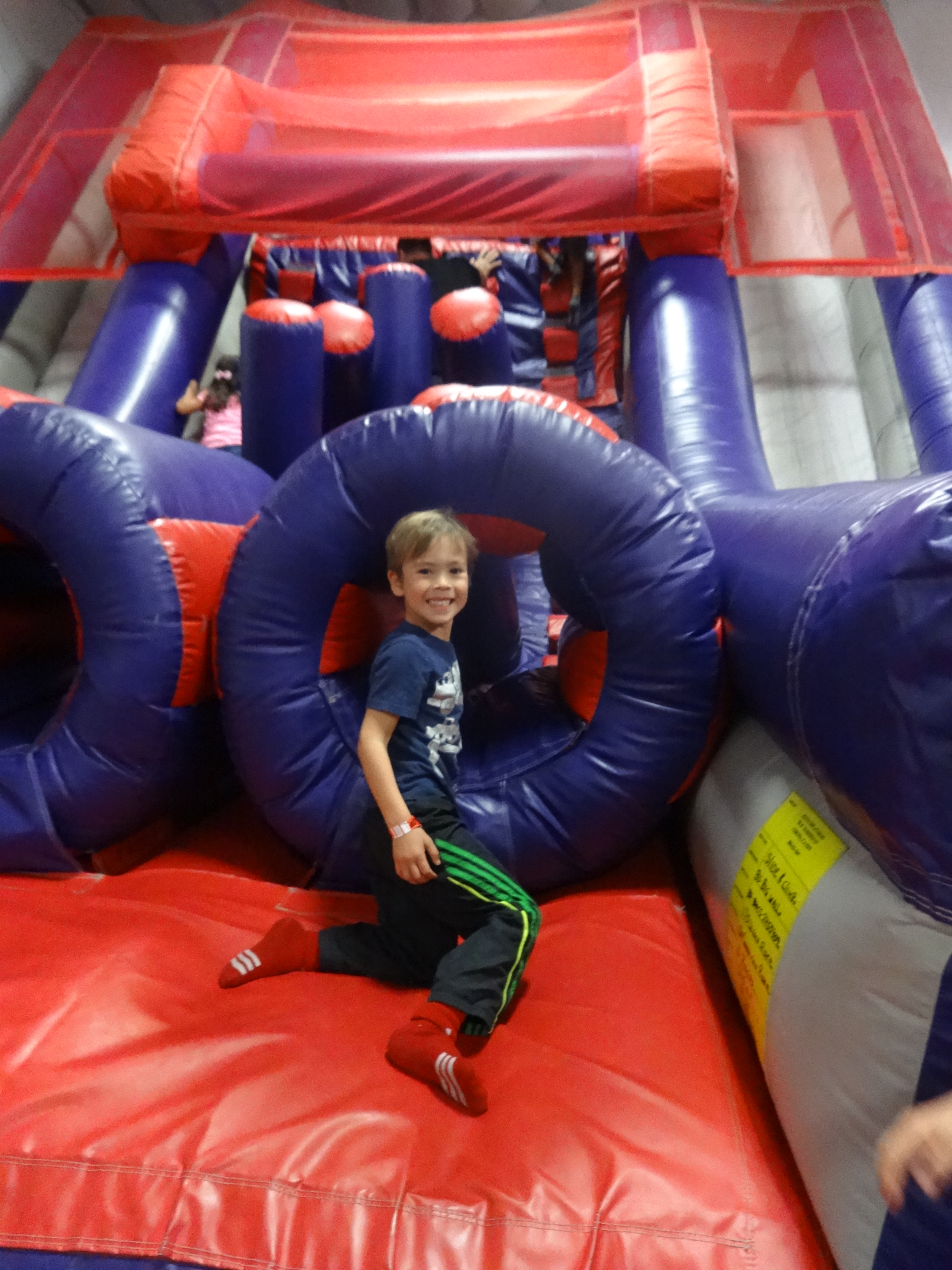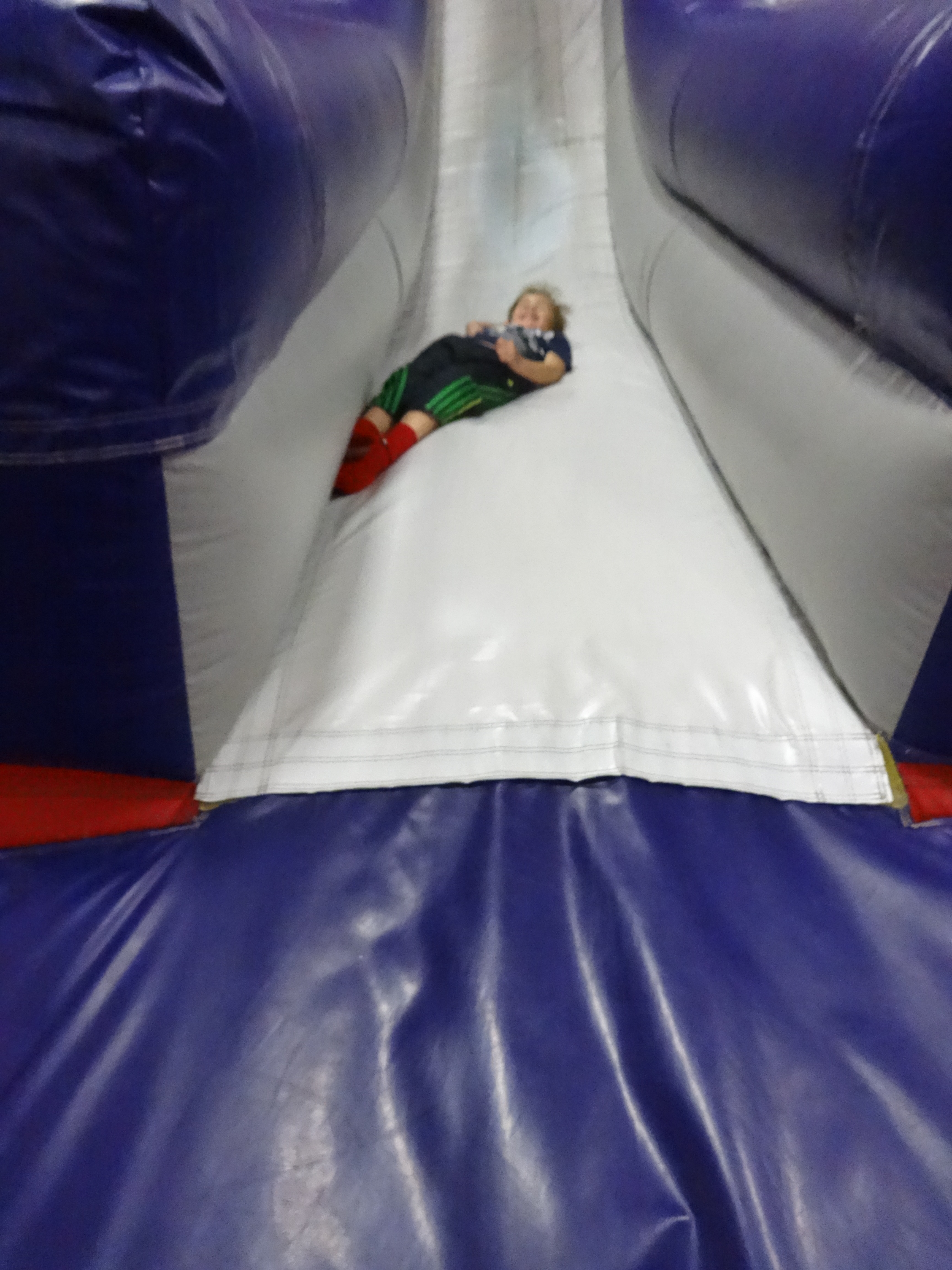 We were at a party today without Paul or Joe, who were at their first baseball practice. This meant Henry really needed some time to warm up to climbing up and sliding down all on his own. It really came down to asking the father of the birthday boy to take Henry to the top, so he could see.