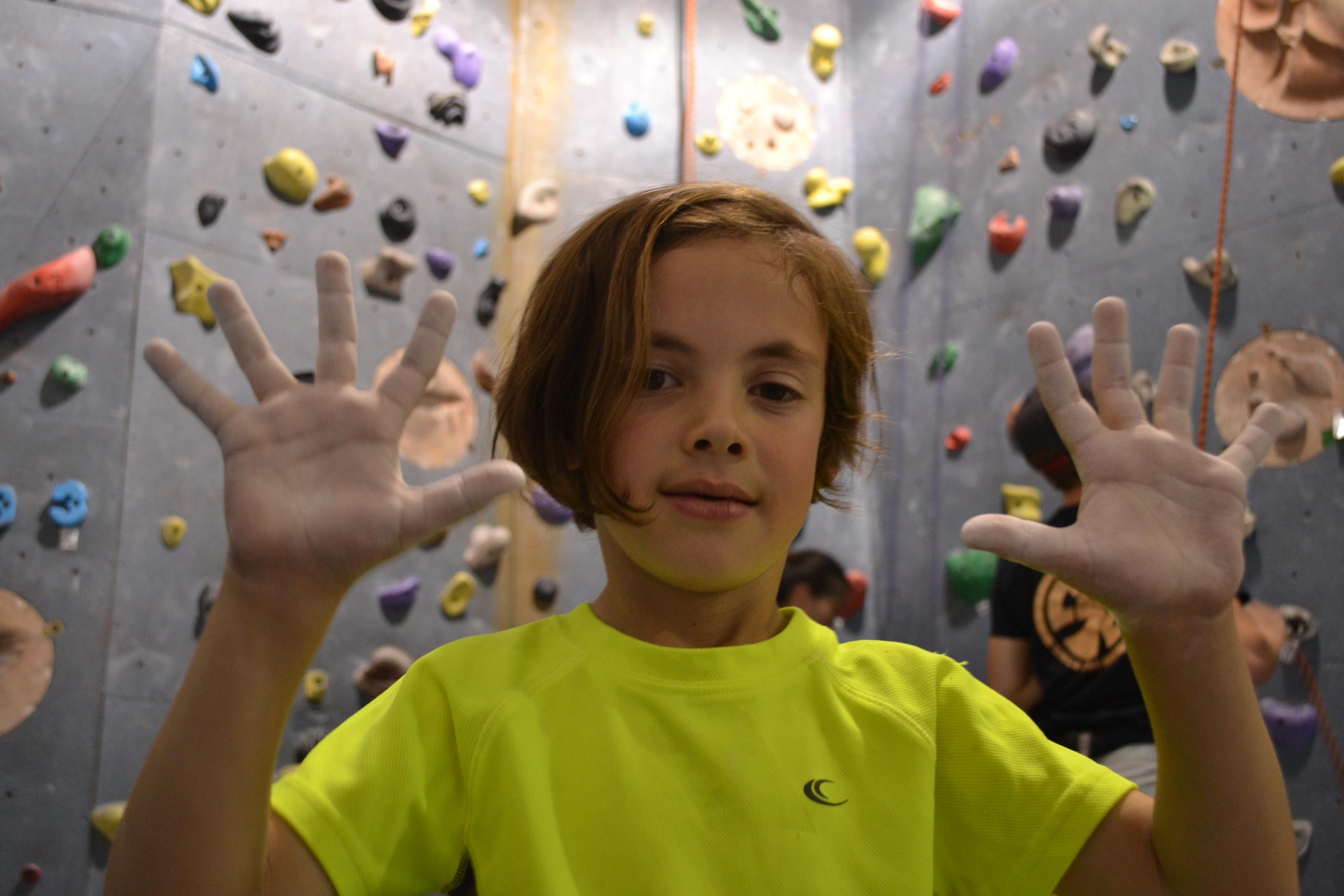 A birthday party the boys went to was being held at a rock climbing gym. The girls stayed home reading books, taking a bath, and having a dance party.