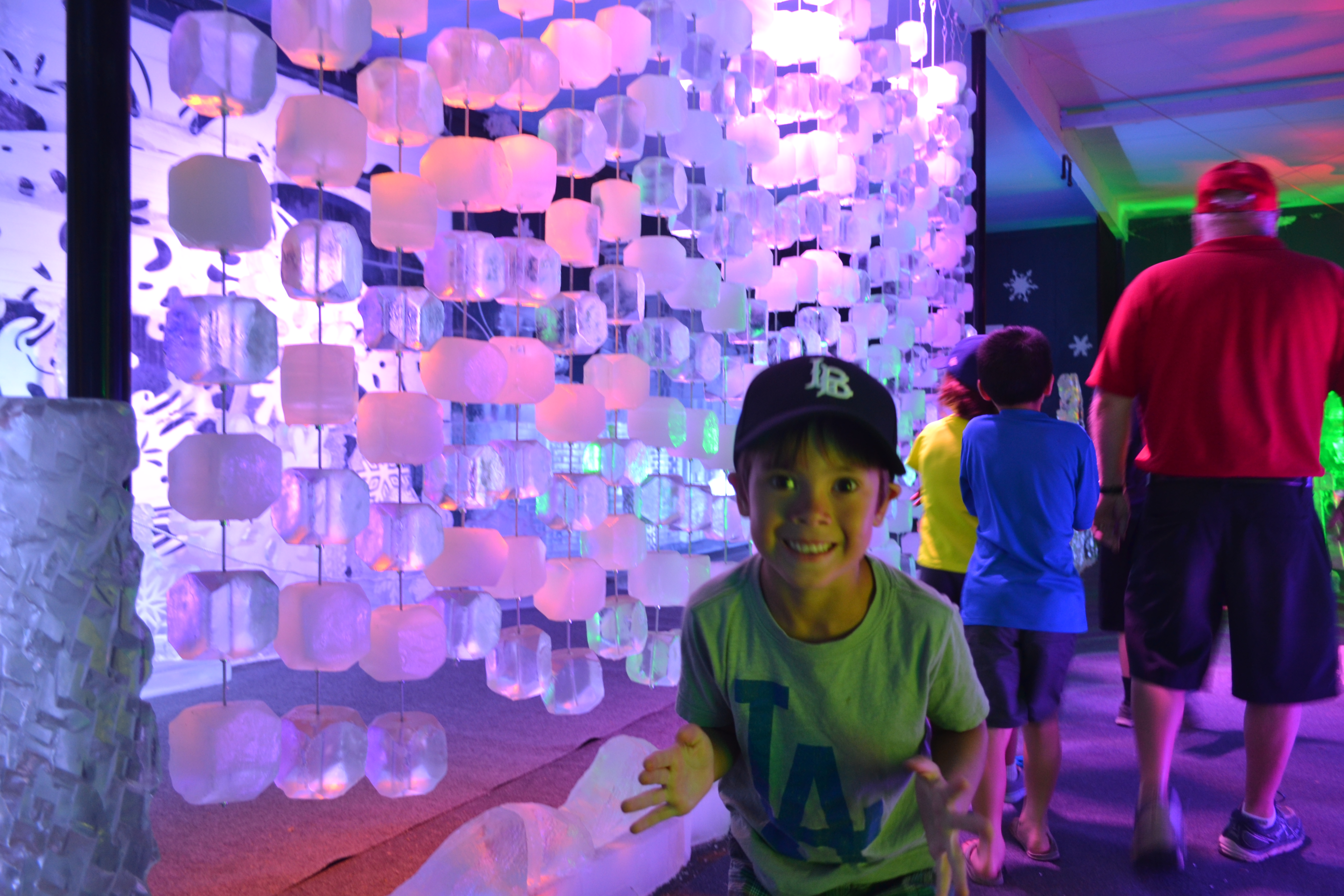 On the way out, they stopped in the ice house to check out the ice sculptures