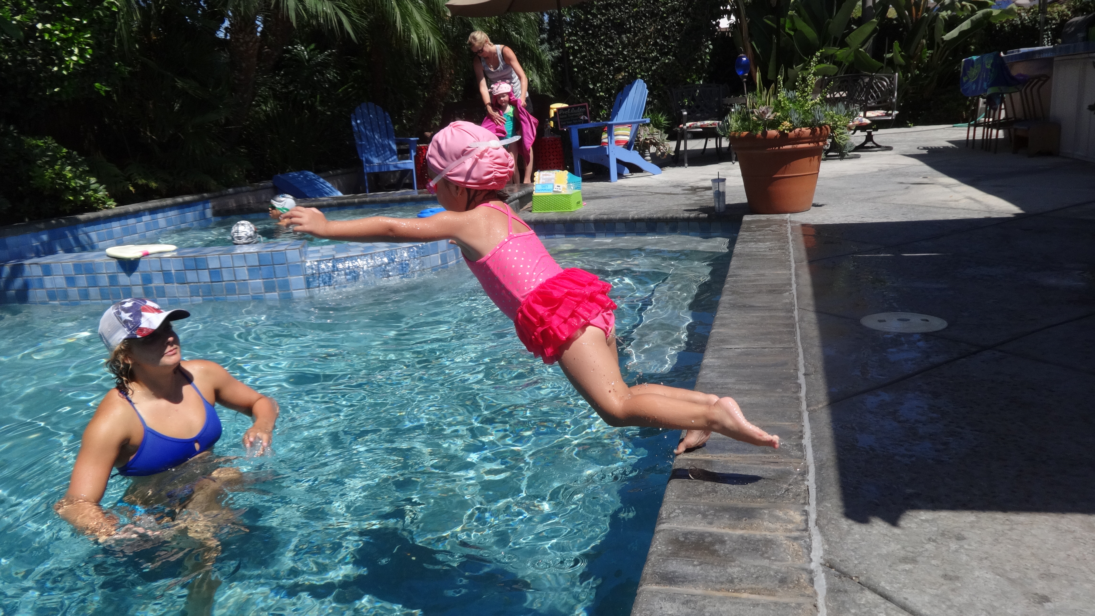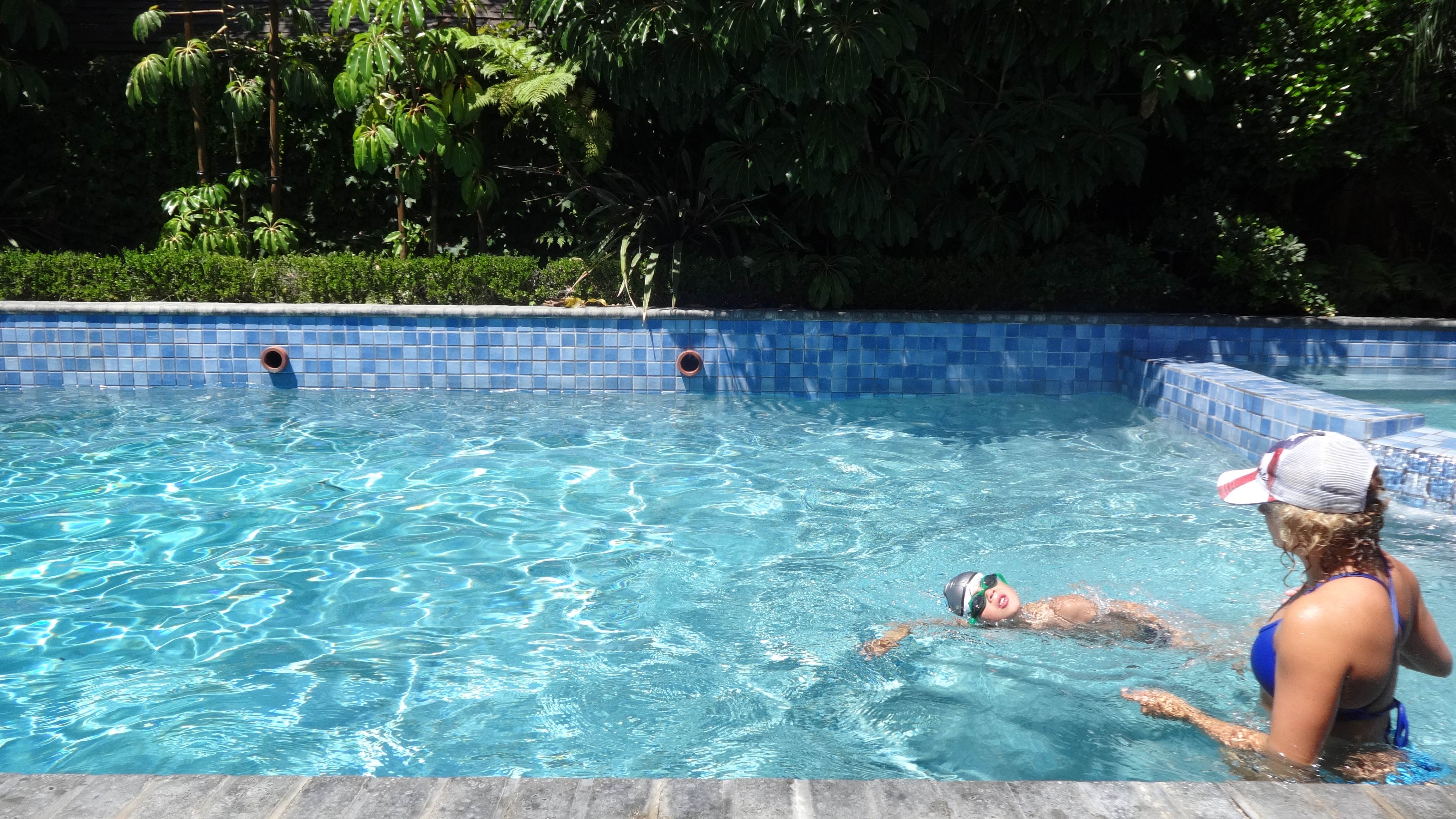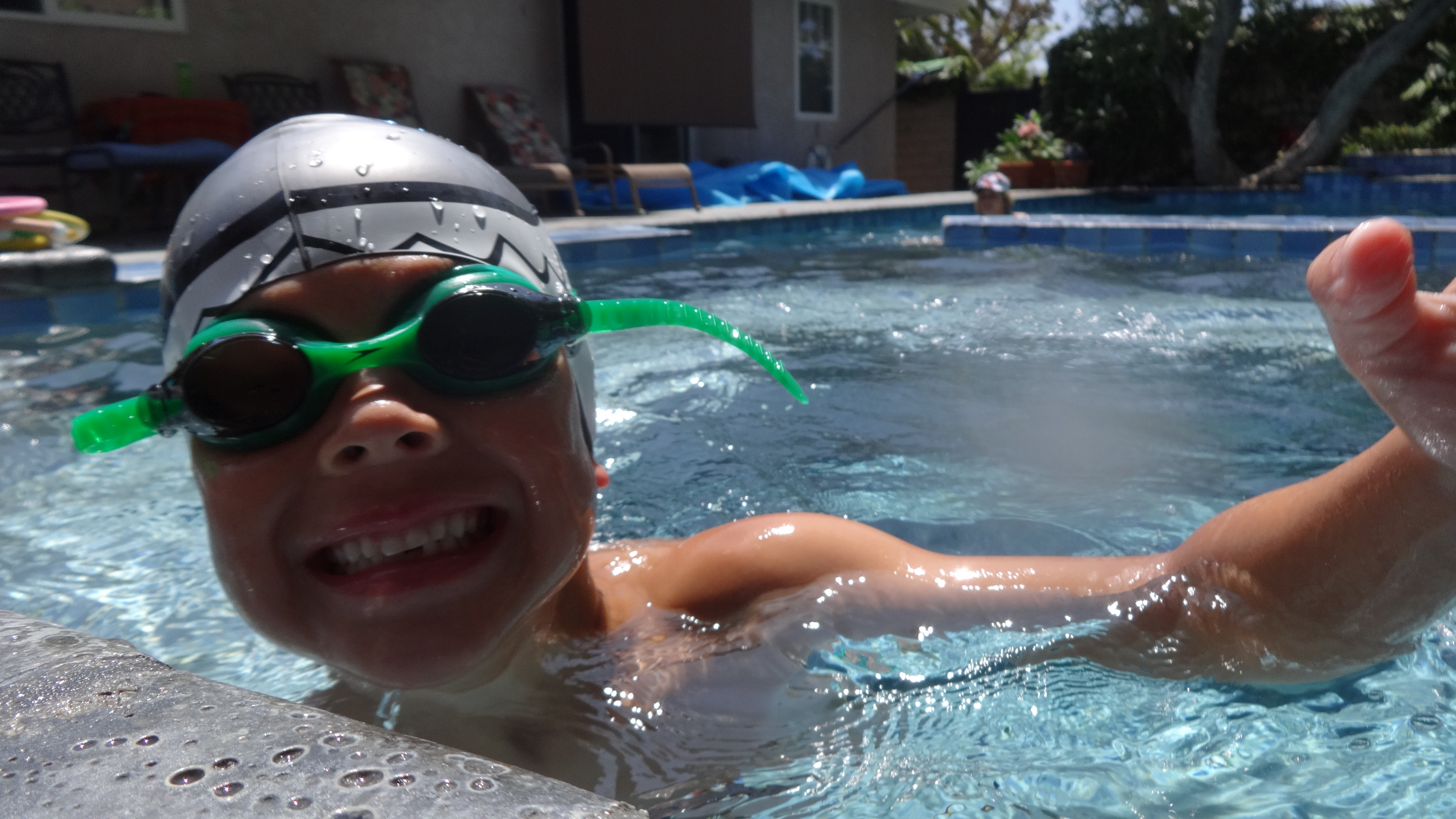 Now they can float, swim, jump in, and the boys are getting good at freestyle swimming.