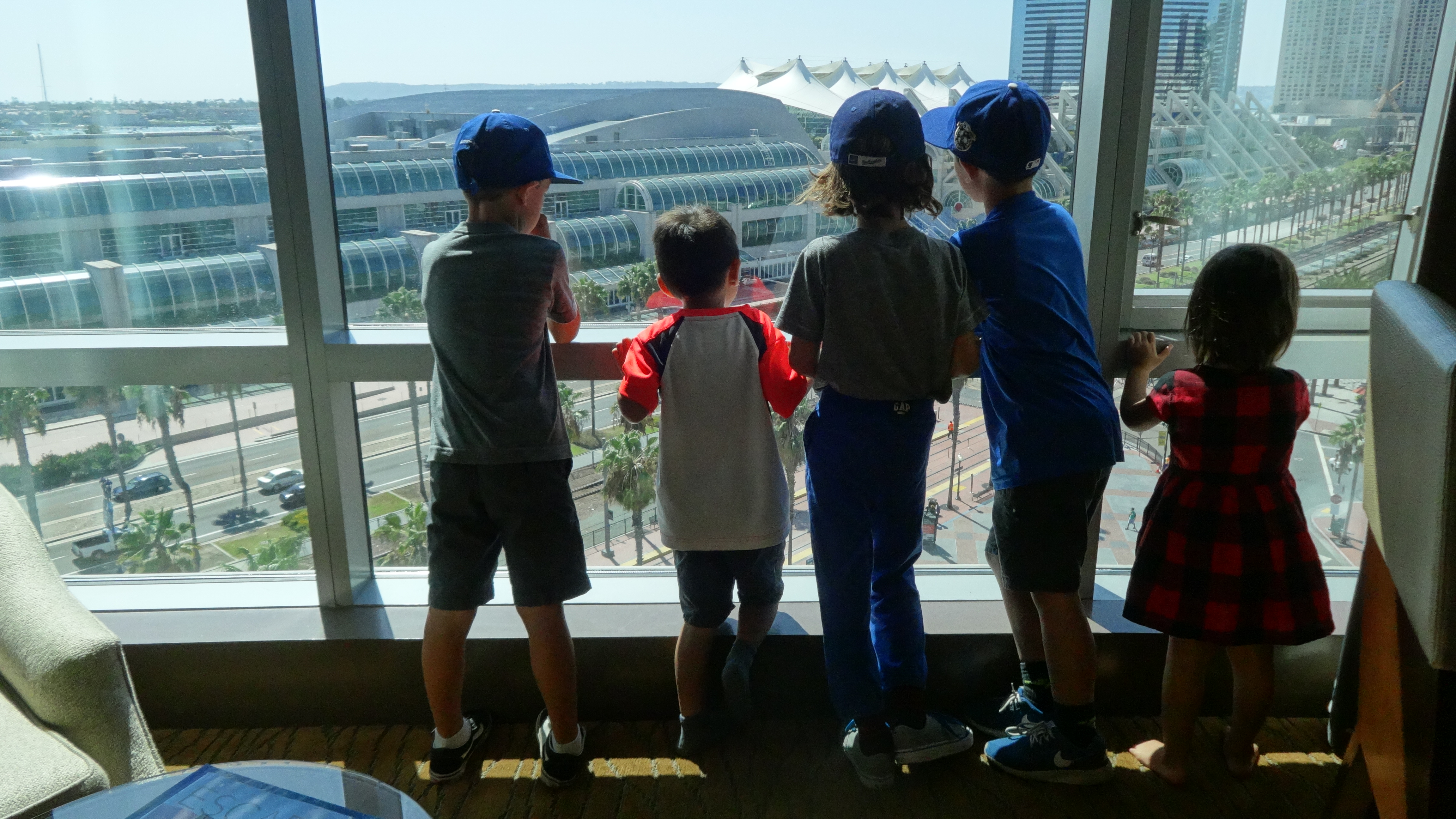So much to see “over there” and “down there” with trains, the bay, and all the people. A busy space to play “I-spy”.