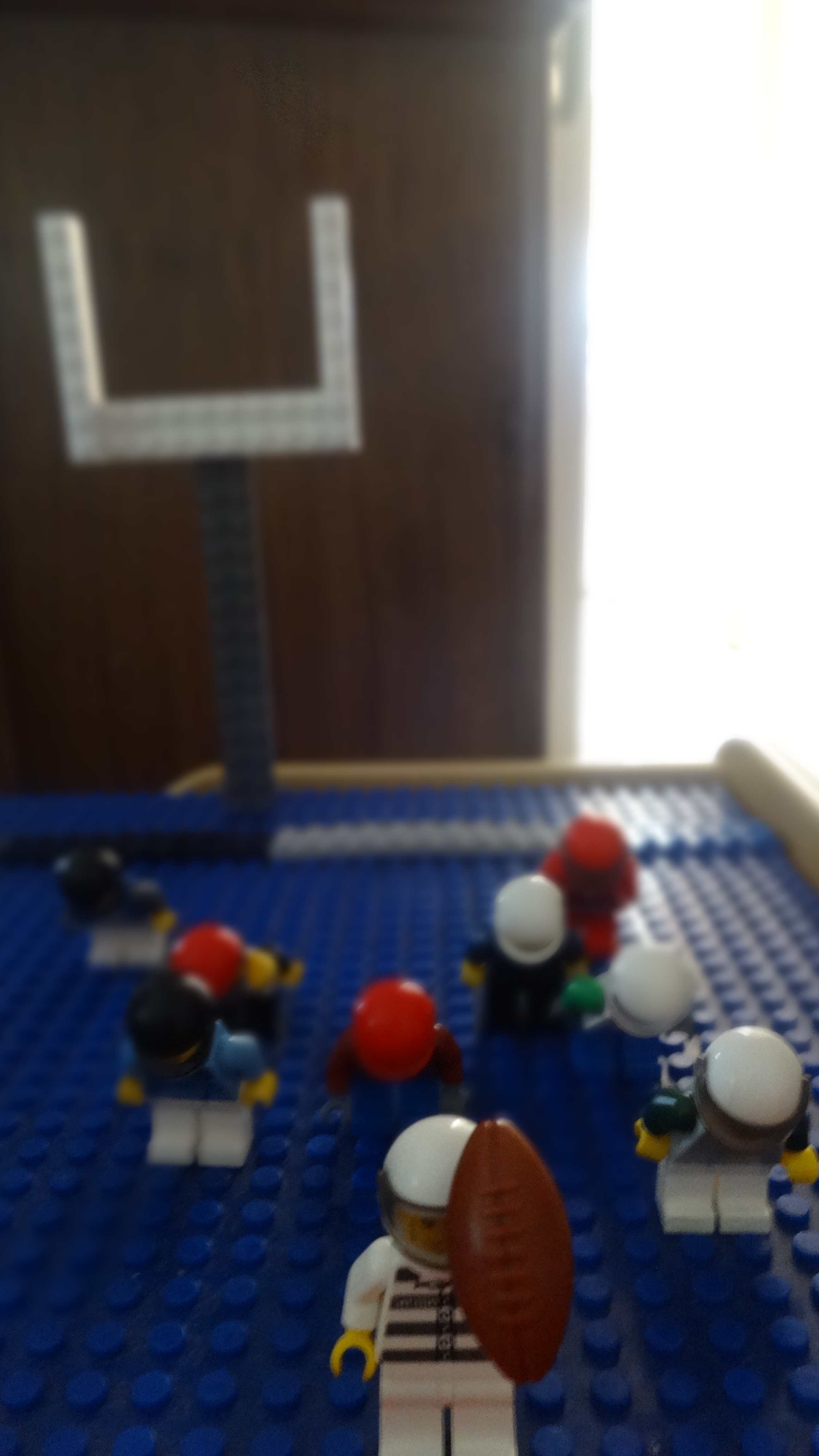 I think my favorite part (because I really don’t like football) is that the little lego guys all have colorful helmets that are bowing forward, while the guy in front is standing straight up. It’s those little details that Paul is noticing and imitating in his play.